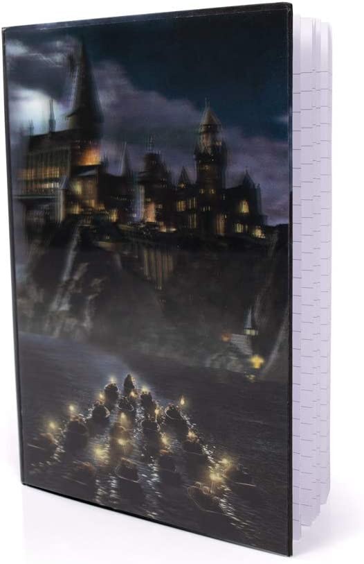 De Wow Stuff nos llega la espectacular libreta con efecto lenticular 3D de Hogwarts, el colegio de magia y hechicería más famoso del universo Harry Potter, la creación más icónica de la escritora JK Rowling. Esta magnífica libreta de gran calidad tiene tapa dura, papel pautado, una goma elástica para poder cerrarla mejor y una portada con una imagen 3D de las barcas de los estudiantes de primer año acercándose a Hogwarts a través del lago. Es de tamaño A5 y tiene 100 páginas. Es un mágico producto de licencia oficial del Wizarding World que servirá para que todos los magos y brujas escriban todos los apuntes necesarios de sus clases de hechizos o pociones. ¡Hazte con la tuya antes de que vuelen!