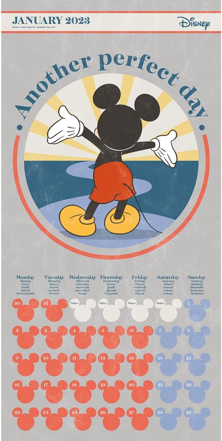 La pareja más famosa y adorable de la animación te ayudará a partir de ahora a que no te olvides en que día vives gracias a este precioso calendario de Mickey y Minnie Mouse que nos trae la marca Pyramid International. Mide 30 x 30 cms y tiene 12 ilustraciones distintas de los dos personajes en distintas escenas de vacaciones disfrutando de los grandes exteriores de su mundo. Es un producto oficial de Disney para todos los fans de la animación y de estos dos iconos.