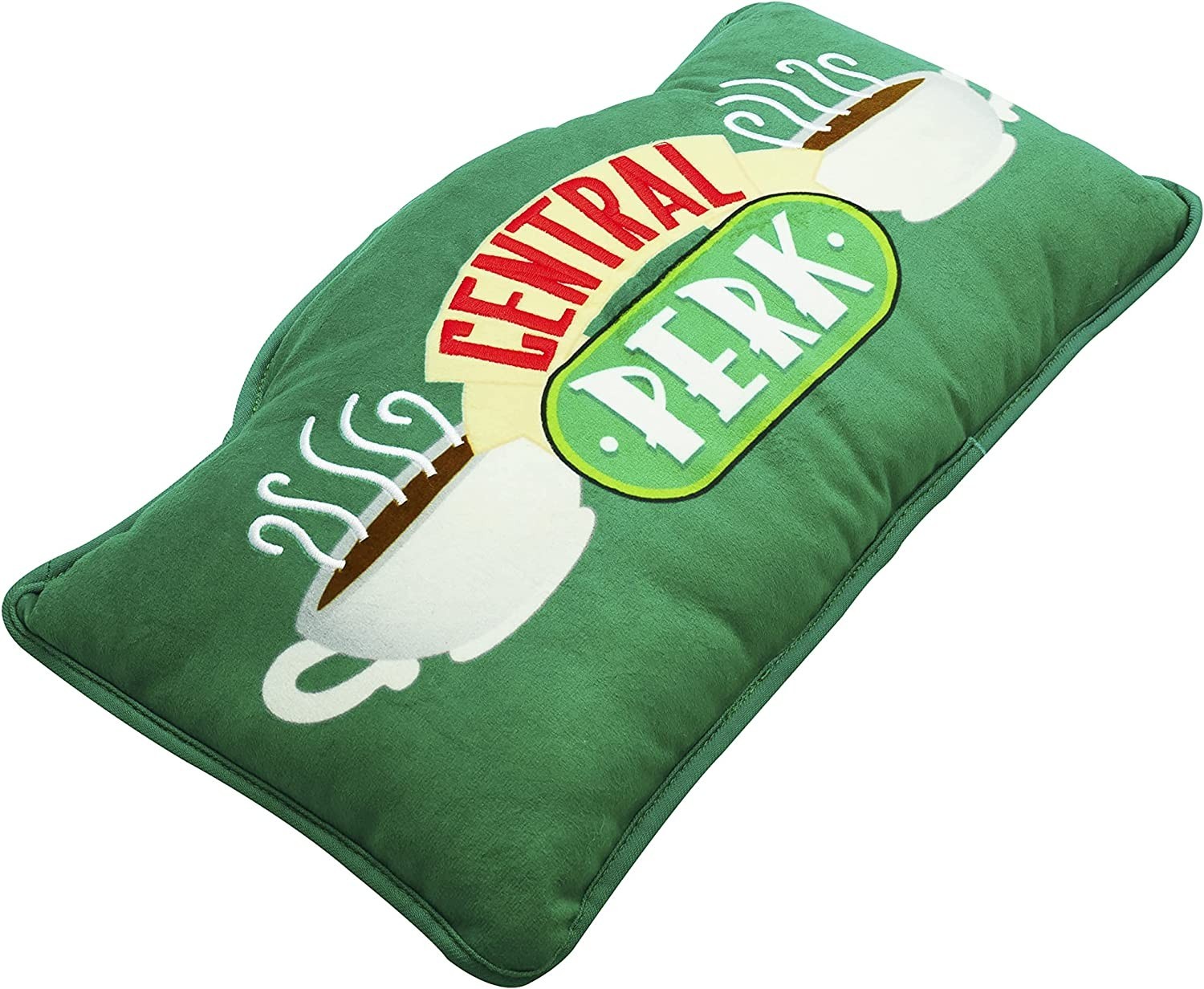 ¡El grupo de amigos más famoso de la televisión ahora por fin estarán en tu propio sofá! No, no te traemos réplicas a tamaño real de los actores, lo que traemos e el exclusivo cojín de licencia oficial del mítico Central Perk, el local en el que se reunían Ross, Rachel, Phoebe, Mónica, Joey y Chandler. Ha sido creado por Abystyle y mide 34 x 20 cms. Por un lado lleva el logo de Central Perk y por el otro los nombres de los personajes como si los hubieran escrito los propios actores. Está hecho de poliéster 100% y le dará a tu rincón preferido el toque neoyorquino que le falta.