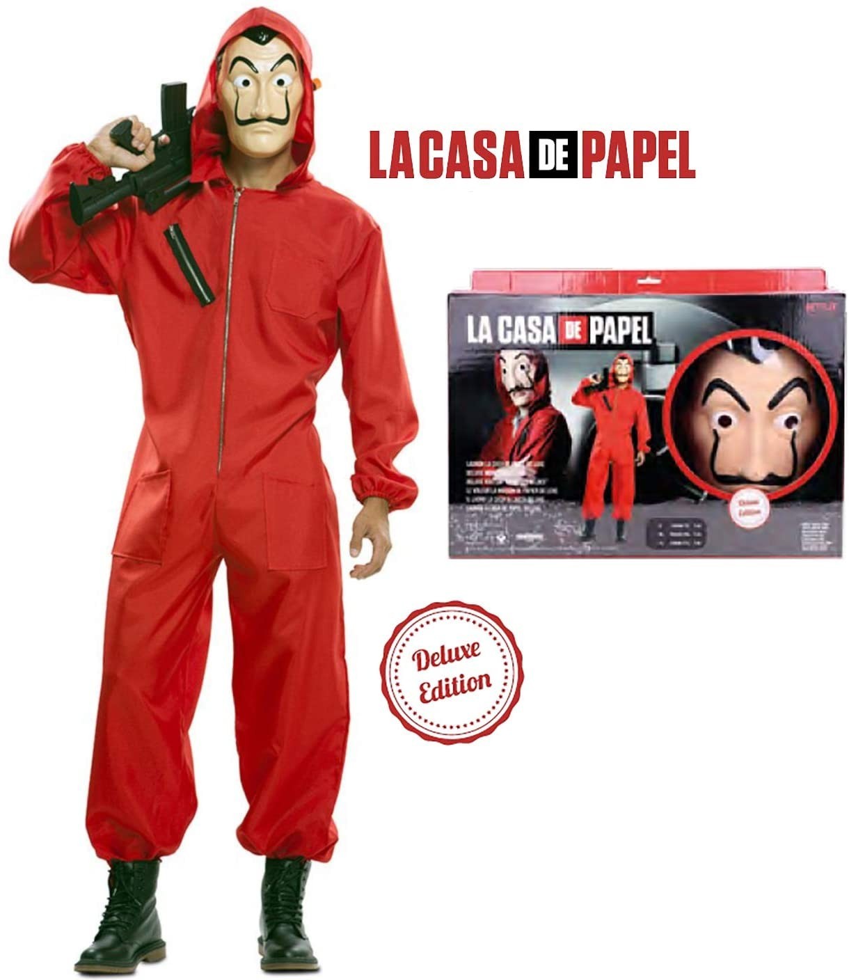 Ponte tus mejores galas para unirte a la banda de El Profesor con este disfraz de atracador que forma parte del merchandising oficial de Netflix de una de sus series insignia: La Casa de Papel. Esta caja Deluxe contiene un mono rojo de talla M-L hecho de poliéster y una máscara de Dalí. Nosotros ponemos el disfraz y tu pones la actitud para que salgas a romperlo en tu próxima fiesta de disfraces.