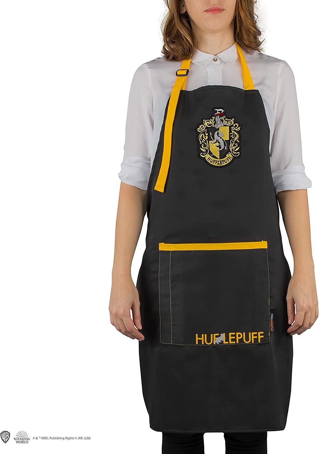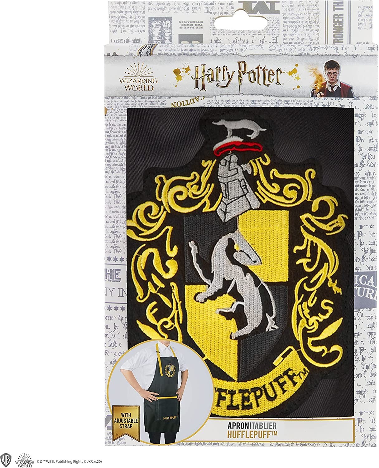 Siéntete como si estuvieras cocinando una de las completas comidas del Gran Comedor de Hogwarts con este espectacular delantal de Hufflepuff. Colecciona los delantales de las Cuatro Casas o hazte con el que más te guste para ser un chef mágico. Es un producto de gran calidad creado por Cineréplicas y hecho de algodón y poliéster. Consta de una cinta ajustable y de bolsillo para utensilios. Es un producto de licencia oficial del Wizarding World. Llévate un trocito del universo Harry Potter a tu cocina.