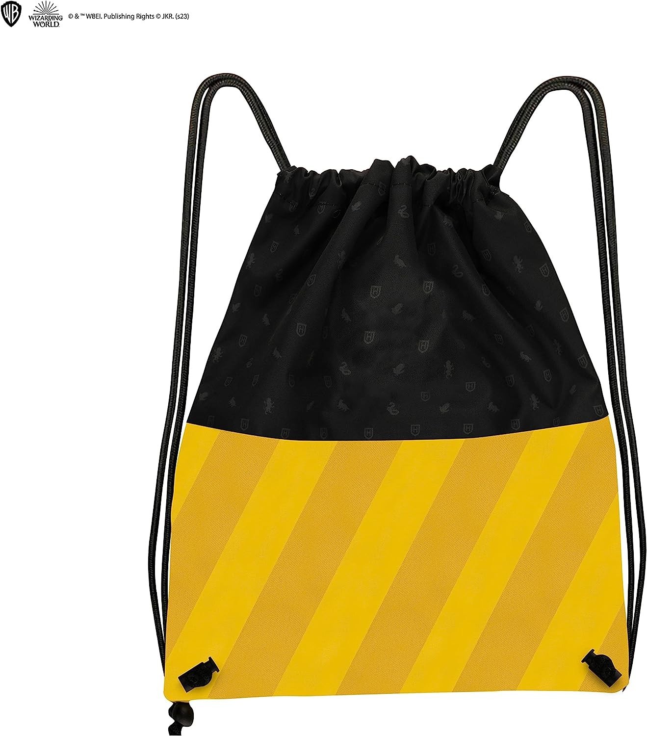 Prepárate para cualquier aventura mágica con la nueva mochila saco de Hufflepuff, la casa de Hogwarts a la que pertenecía Cedric Diggory, entre otros ilustres personajes. Creada por Cineréplicas, esta bolsa es un producto oficial del Wizarding World. Tiene los colores negro y amarillo característicos de esta casa del colegio de magia y hechicería con tejón como símbolo, además de cuerdas para colgar de la espalda y un bolsillo con cremallera. Esta hecha de algodón y poliéster.