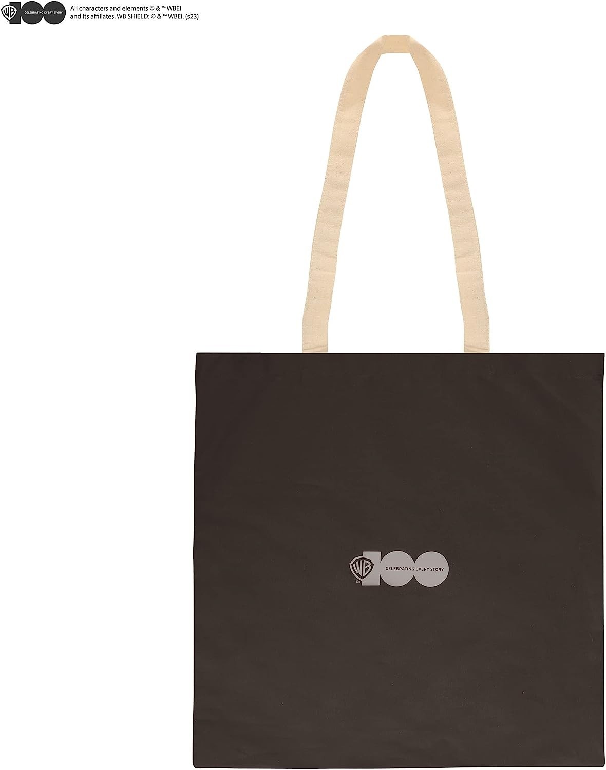 Bugs Bunny, el Pato Lucas, Coyote, Correcaminos, el Demonio de Tasmania y Marvin el Marciano celebran juntos el 100 aniversario del legendario estudio de cie Warner Bros. Y lo hacen rodeando el elegante logo del estudio en serigrafiado en esta bolsa en colores blanco y negro. Hazte con esta bolsa de algodón 100% de licencia oficial y lleva a todas partes a varios d ellos personajes más divertidos e icónicos del mundo de la animación. La bolsa es de un discreto color marrón con los personajes a todo color y unos asas de color beige.