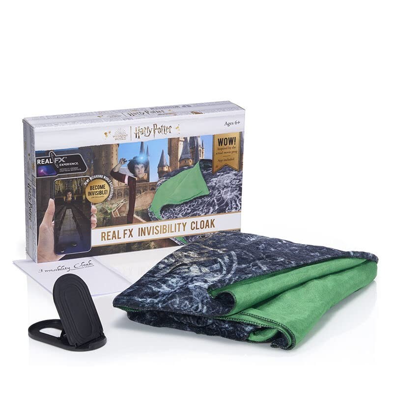 Wow Stuff te trae uno de los productos más impresionantes de Harry Potter, uno de esos que te acercan un poco de la magia del universo del mago a tu día a día para que te diviertas y te sorprendas. Se trata de… ¡la capa de invisibilidad! Dentro de una elegante caja negra viene una capa de tela que es una réplica de la original que aparece en las películas. Incluye un soporte para el teléfono móvil, la app de invisibilidad para iOS y Android, la capa y las instrucciones. ¡Graba vídeos y vuélvete invisible igual que Harry y sus amigos! Para que funcione es necesario un dispositivo móvil o tablet con cámara incorporada y descargar la app. Hazte con tu capa de licencia oficial y pásatelo en grande poniéndote en la piel de Harry Potter y usando uno de los objetos más icónicos de la saga cinematográfica.