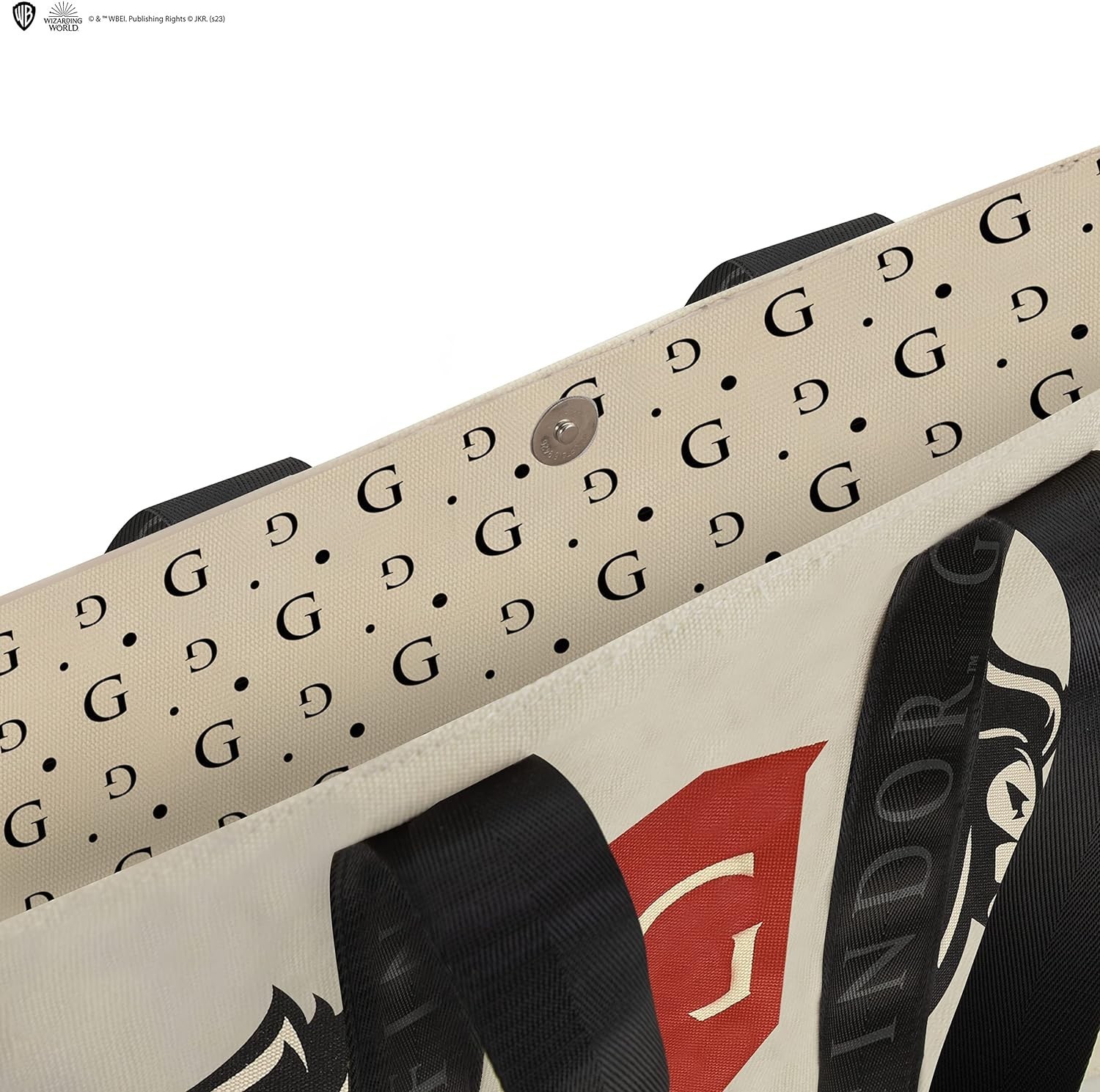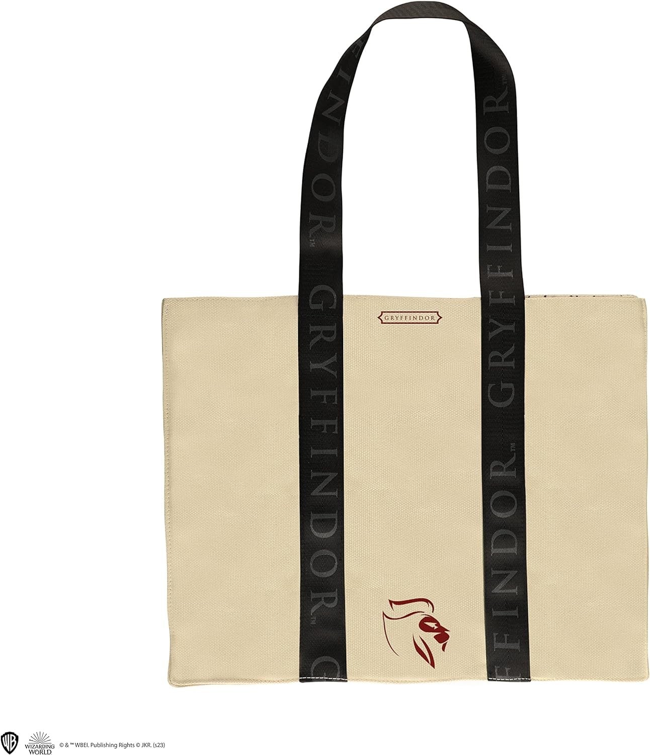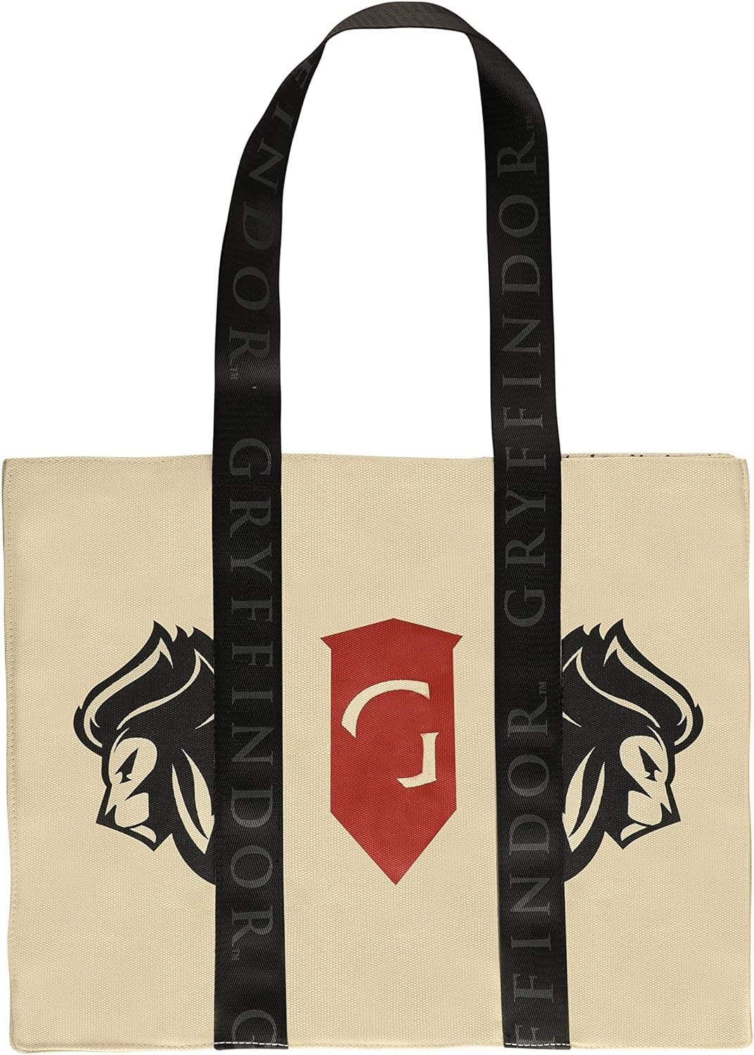 La casa de Hogwarts de escudo rojo y amarillo responde al nombre de Gryffindor, y fue a la que pertenecieron Harry, Ron y Hermione. Ahora, gracias a Cineréplicas podrás tener una bolsa tote hecha de algodón y poliéster de Gryffindor. Tiene varias serigrafias con el león símbolo de la casa y las cintas son de color negro. Es elegante y robusta y te servirá para llevar todo lo que necesites en tu día a día o en una excursión por los terrenos de Hogwarts. Es un producto oficial del Wizarding World. Luce con orgullo el símbolo de tu casa mágica y deja que la magia de Harry Potter te acompañe siempre.