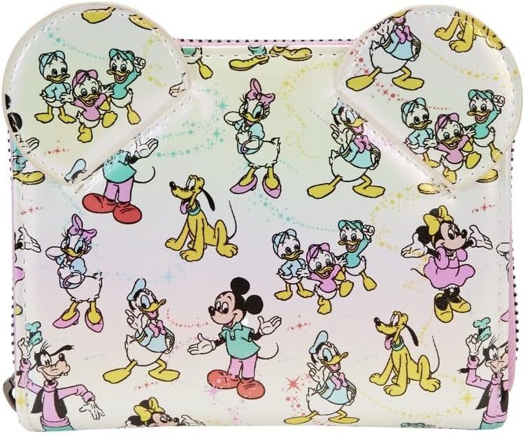 El icónico y adorable Mickey Mouse viene acompañado de todos sus amigos, y ahora “vivirán” en tu bolsillo o bolso. Estos simpáticos y famosos personajes, que han marcado la historia del cine, decoran los exteriores blancos de esta cartera billetera que nos trae la marca Loungefly y que cuenta con licencia oficial Disney. Tiene cremallera, así que no te preocupes porque se te caigan tus pertenencias. Hazte con ella y tendrás uno de los accesorios más alegres con los que te puedes hacer.