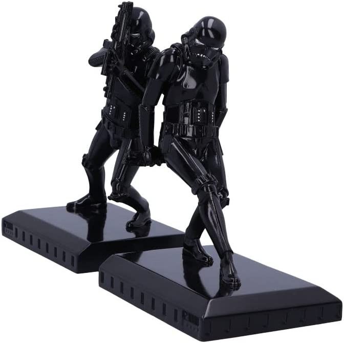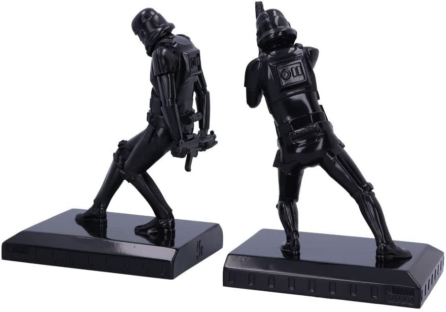 The Original Stormtrooper, la licencia oficial de Star Wars que ha creado una simpática variedad de artículos centrados en los Soldados de Asalto más famosos de la galaxia, te trae dos sujeta libros espectaculares. Hechos de polirresina y con un elegante color negro, estos dos Stormtroopers han sido fabricados por la prestigiosa marca británica Nemesis Now, famosa por la variedad, originalidad y calidad de los productos y réplicas que elabora. Sujeta el saber de toda la galaxia con estos dos esforzados soldados de 19 cms de altura que serán pieza central de cualquier biblioteca friki.