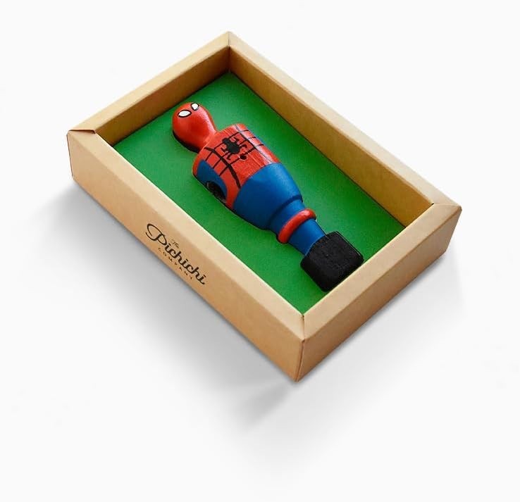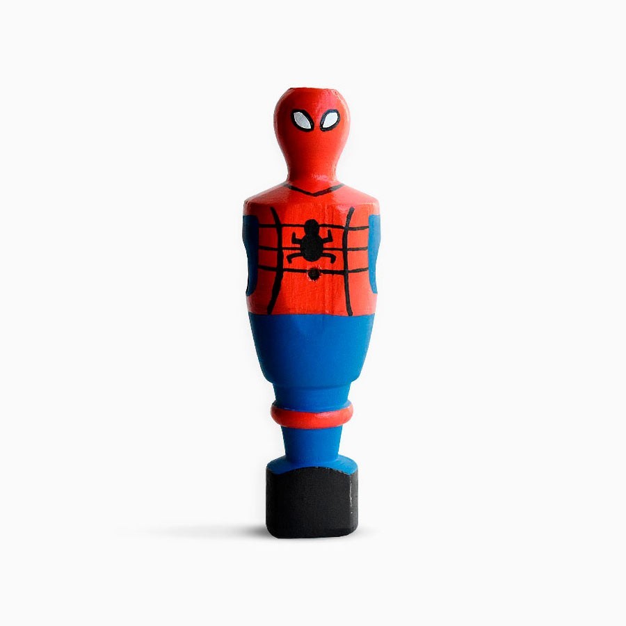 ¡Atentos fans de los superhéroes y los futbolines! ¡The Pichichi Company ha creado una exclusiva figura de futbolín de tu amigo y vecino Spider-Man! Esta figura 100% artesanal de 12 cms está hecha de madera y ha sido pintada a mano con un cuidado excelso. Exponla en su caja con ventana transparente o ponla en tu futbolín y junta dos de los mundos más divertidos que existen: ¡fútbol y superhéroes! ¡Colecciona todas las figuras distintas que hay de célebres personajes de las viñetas y el cine y juega unas partidas únicas con tus amigos!
