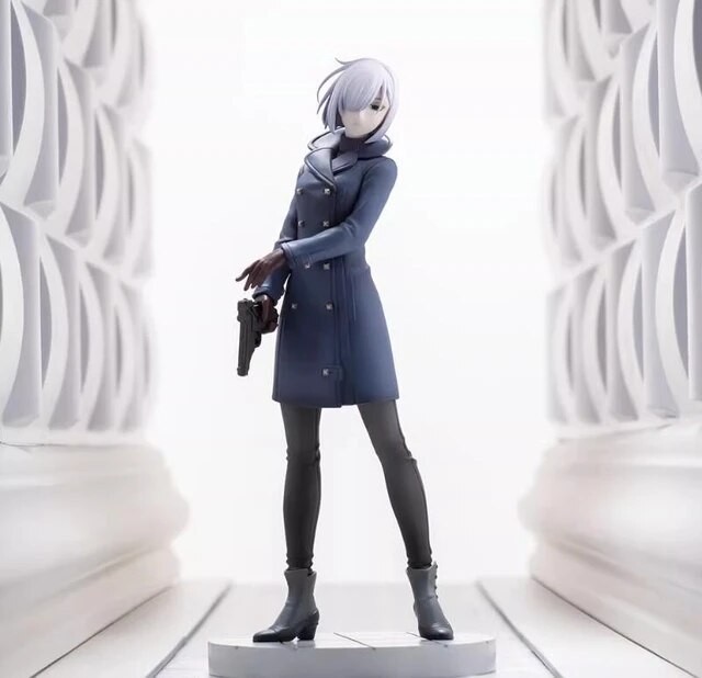 Fiona Frost es una espía que pertenece a WISE, el servicio de inteligencia de Westalis, y actúa bajo el sobrenombre de Nightfall. Este elegante personaje trabaja como asistente de Loid Forger en el Hospital de Burlington. La figura de Nightfall mide unos 19 cms y viene con una peana de exposición. Está en una postura relajada con el arma apuntando abajo y el pelo ligeramente mecido por la brisa. Es una creación de la marca Luminasta. Está hecha de PVC.