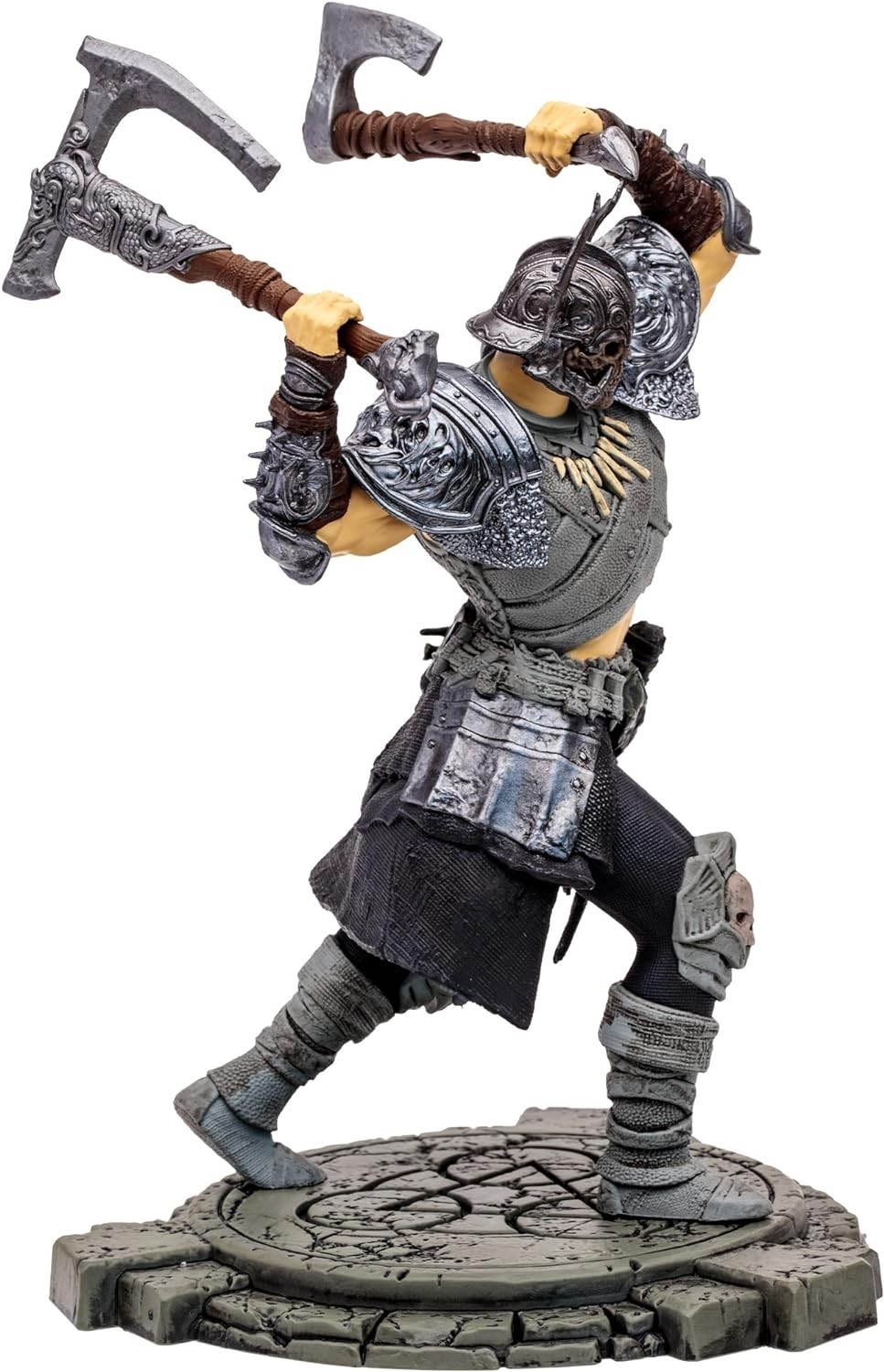 El imponente Whirlwind Barbarian, del videojuego Diablo IV, por fin llega a tu colección de figuras. Blizzard, el estudio responsable del célebre videojuego, se ha asociado con McFarlane Toys, la legendaria compañía fundada por el artista Todd McFarlane, y nos traen una serie de impresionantes figuras de este mundo de espadas y hechizos. La figura mide unos 15 cms e incluye tremendos accesorios super detallados como tres hachas distintas, una maza y una cabeza. Incluye también un arma misteriosa, y el terrorífico bárbaro viene sobre una peana de exposición para que lo coloques donde más te guste. Está hecho de PVC de gran calidad que ha sido detallado con sumo cuidado. Pertenece a la línea Epic.