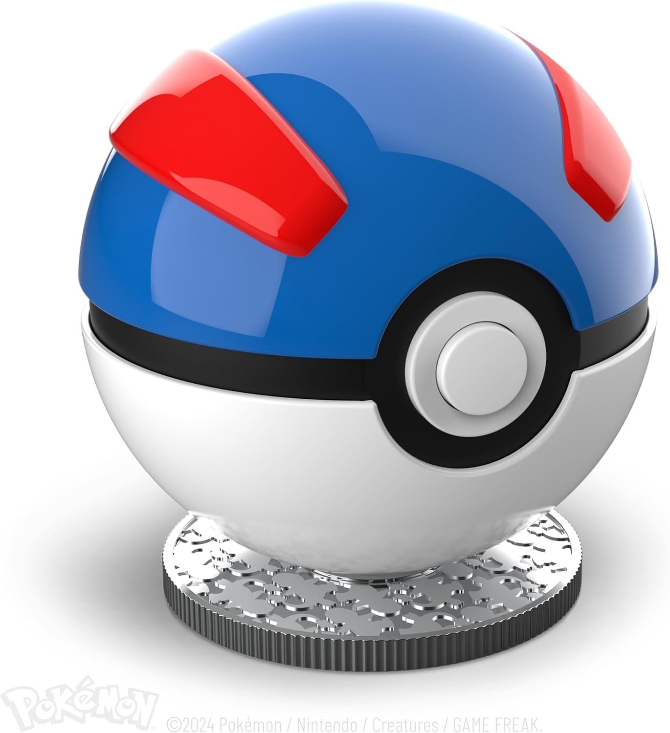 ¡Atrapa la nostalgia y el estilo con esta mini Great Ball de Pokémon! Esta réplica de metal (die-cast) es el sueño de cualquier entrenador: con un acabado premium y numeración individual, es una pieza de colección única. La Great Ball brilla literalmente con un sensor luminoso de proximidad que se enciende cuando te acercas, como si estuvieras a punto de capturar tu próximo Pokémon. Incluye una peana elegante para exhibirla con orgullo en tu estantería y una batería que mantiene la magia viva. Es una creación de licencia oficial de The Wand Company, ¡perfecta para los entrenadores más serios... y nostálgicos! Viene en una elegante caja negra e incluye la pila.