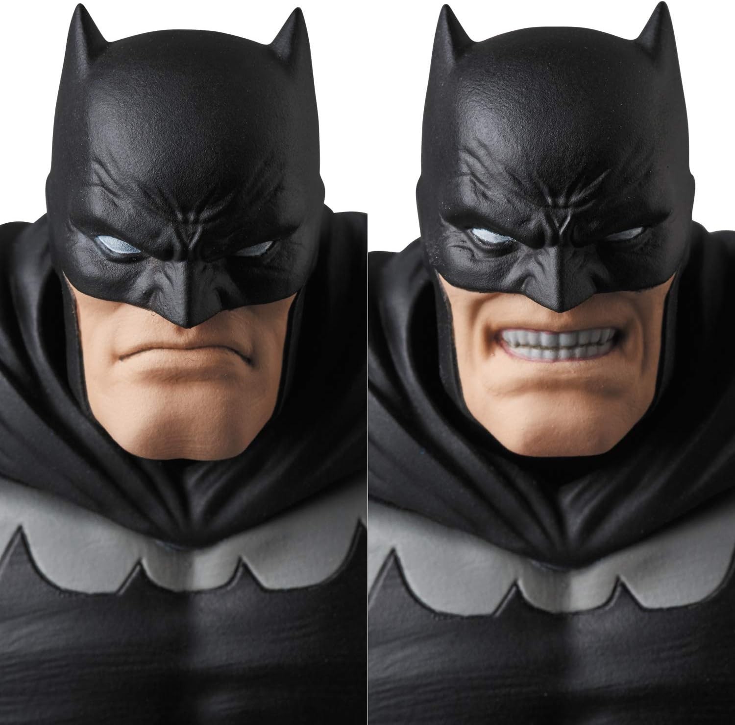 Esta figura de 16 cms de Batman de The Dark Knight Returns captura a la perfección la esencia del Caballero Oscuro en su versión más robusta y sombría dibujada por Frank Miller. Fabricada en PVC por Medicom Toy bajo la línea Mafex, esta impresionante pieza muestra el traje gris y negro del héroe, con detalles musculares y una expresión intimidante en el rostro que refleja sus años de lucha. Incluye cuatro batarangs para recrear escenas de combate, cuatro pares de manos intercambiables para poses dinámicas, y una cabeza intercambiable que muestra su icónica mueca. Incluye también una peana de exposición transparente. Ideal para coleccionistas, esta figura es pura intensidad en cada detalle. Sal a por los mutantes y enséñales lo que es la justicia.