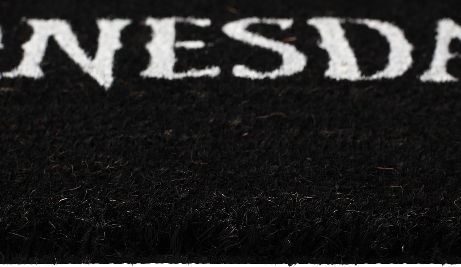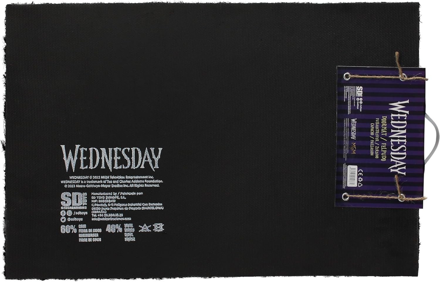 Ahora podrás sentir que entras en el mundo gótico y mágico de Wednesday Addams cada vez que pases por encima de este felpudo de licencia oficial de la querida serie de streaming. SD Toys nos trae el felpudo de 60 x 40 cms de Wednesday con el logo de la serie protagonizada por Jenna Ortega en su superficie de forma predominante.