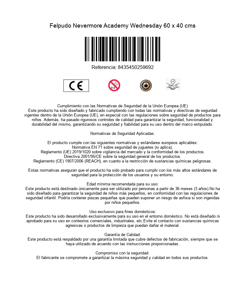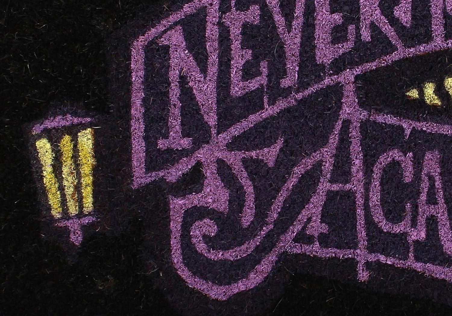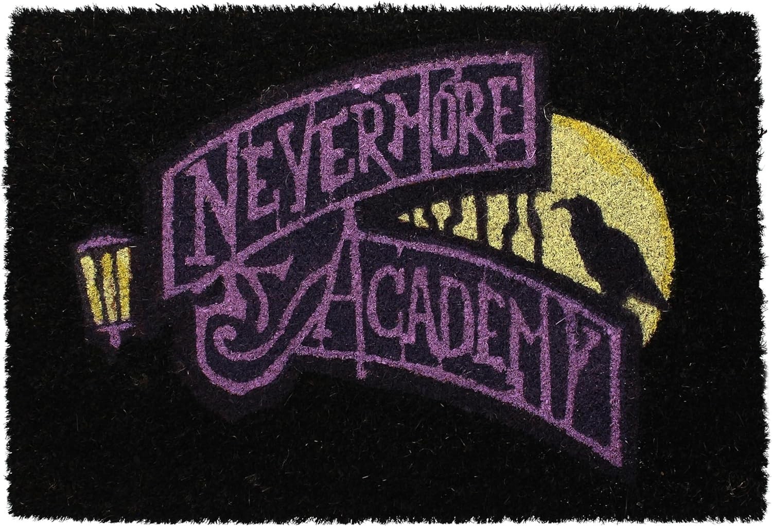 Ahora podrás sentir que entras en el mundo gótico y mágico de Wednesday Addams cada vez que pases por encima de este felpudo de licencia oficial de la querida serie de streaming. SD Toys nos trae el felpudo de 60 x 40 cms de Wednesday con el nombre de la Academia Nevermore en inglés en su superficie. Las góticas y elegantes letras de la archiconocida institución darán a bienvenida a tus invitados.