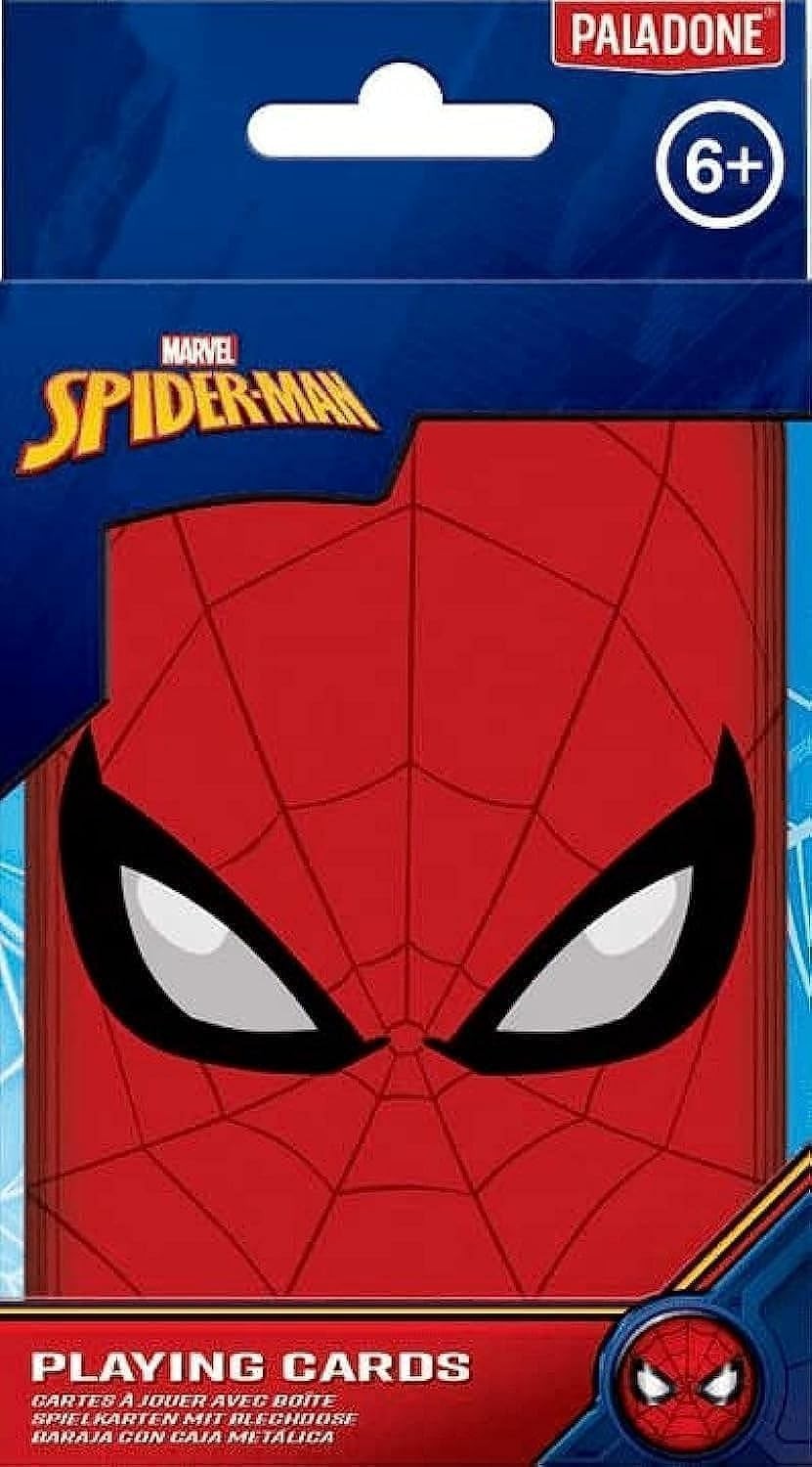 ¡Pásatelo en grande con el trepamuros y todo su mundo! Spider-Man, el héroe neoyorquino de Marvel, es el protagonista absoluto de esta baraja de naipes que nos trae Paladone desde los tejados de la Gran Manzana. Esta baraja francesa de cartas 52 viene dentro de una caja metálica que parece la máscara de Spider-Man. Los villanos de Spidey vienen también representados en estos naipes con los que podrás jugar a un montón de juegos de mesa con tus amigos. ¿Estás listo?