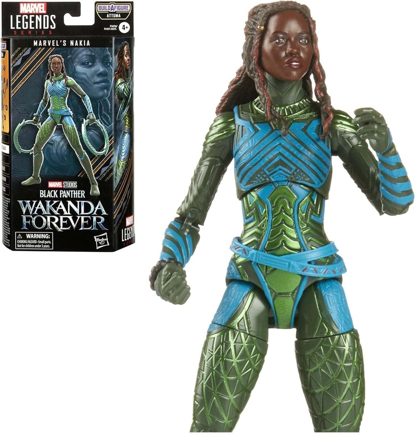 Nakia, una de las mejores espías de Wakanda, interpretada por Lupita Nyong’o, llega a tu reino con la figura articulada de 15 cms que nos trae Hasbro y su línea Marvel Legends. Inspirada en su aparición en “Black Panther: Wakanda Forever”, esta figura de Nakia incluye accesorios como dos armas, dos manos adicionales, cabeza adicional y una pieza de Attuma, uno de los guerreros de Namor. Podrás construir a tu propio Attuma con la pieza que corresponde a la línea Build-A-Figure. Nakia está hecha de PVC y una de sus dos cabezas tiene un casco, el que llevaba cuando se infiltraba en la ciudad submarina, reino de Namor.