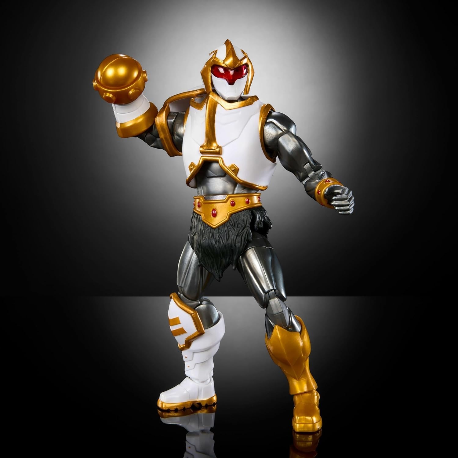 ¡La nueva figura articulada de Man of War de 18 cms de la serie de Netflix, Masters of the Universe Revolution, es pura adrenalina en tus manos! Diseñada con un detalle impresionante por Mattel, captura la esencia feroz de este guerrero legendario de armadura blanca y dorada. Puedes recrear sus poses más épicas, desde ataques poderosos hasta defensas impenetrables. El acabado detallado de su armadura reluce con un toque futurista, mientras sus armas intercambiables prometen horas de acción sin fin. Esta figura es perfecta tanto para los fanáticos de la nostalgia como para los coleccionistas modernos. ¡Prepárate para liberar el poder de la revolución! Incluye accesorios como un puño adicional, máscara, arma de choque adicional y un efecto de fuego.