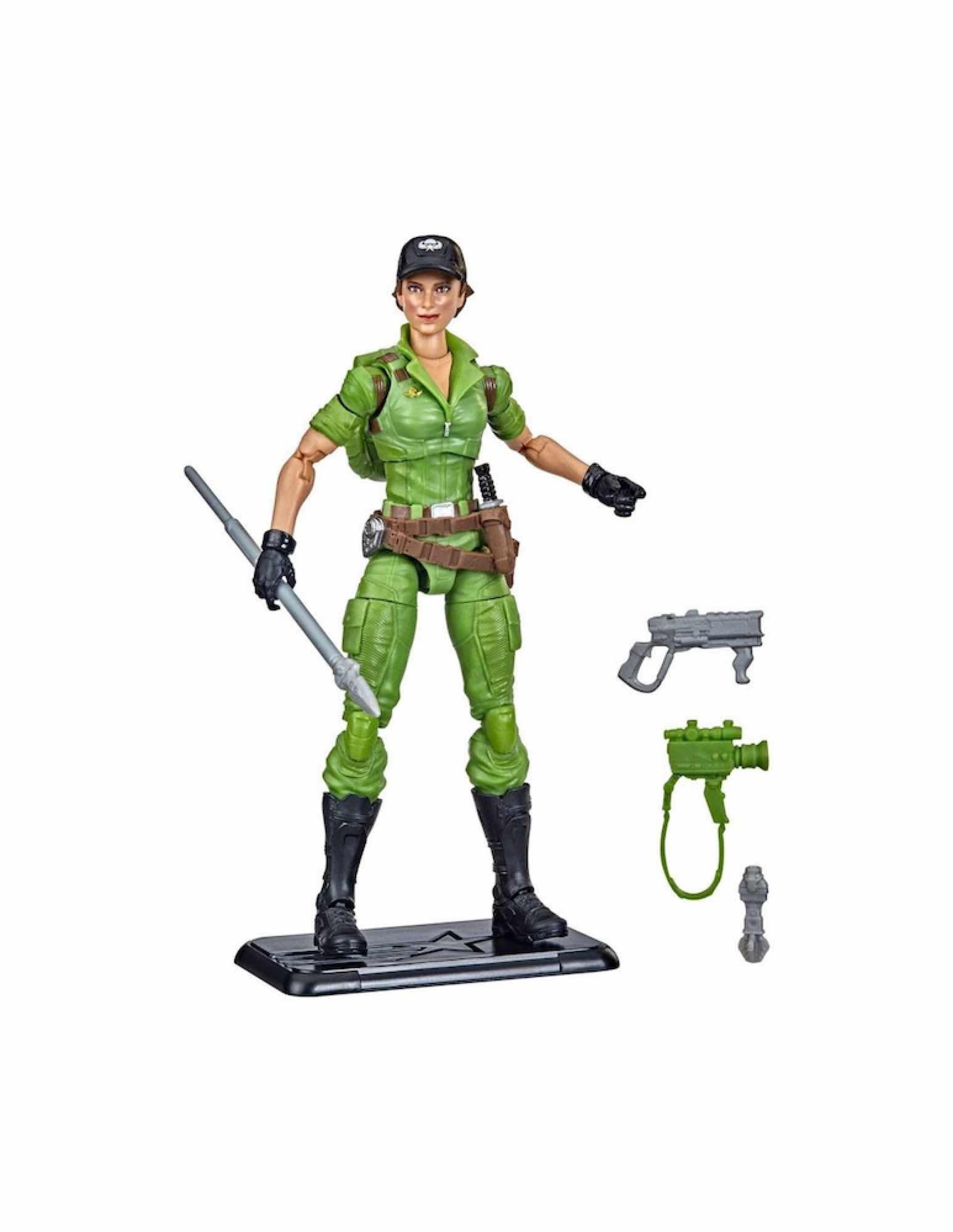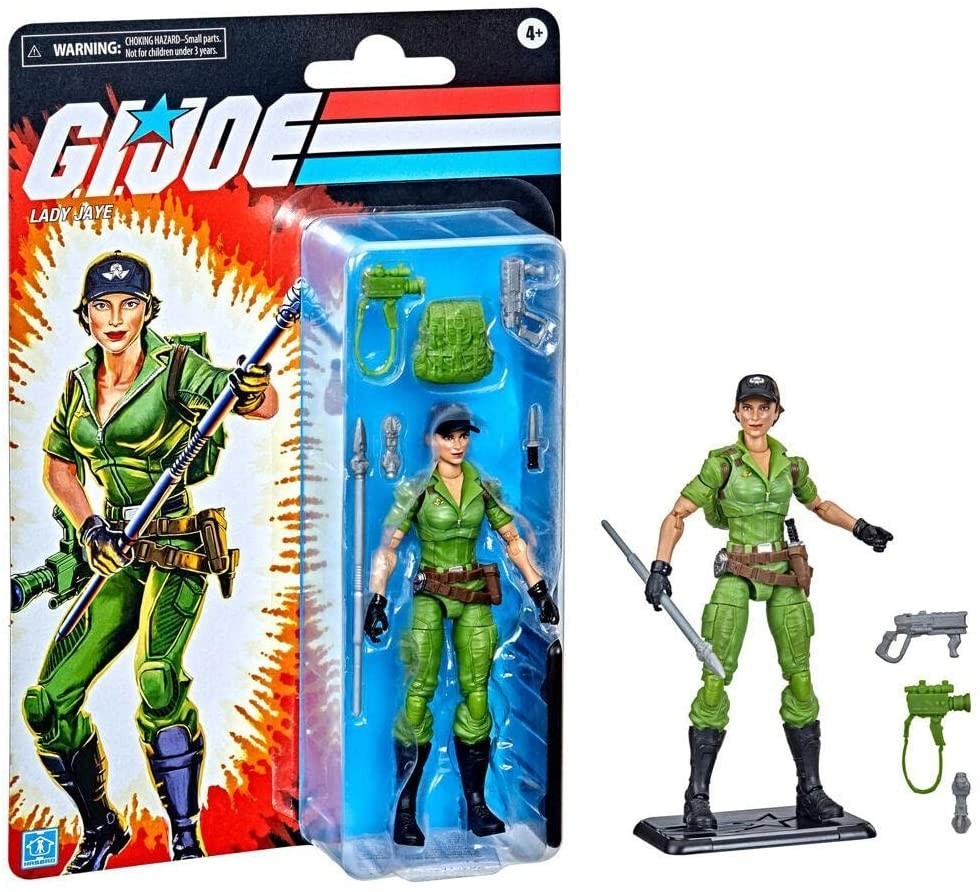 Lady Jaye es uno de los operativos más completos del equipo GI Joe. Lingüista, actriz, artista de mimo y espía, Jaye ha dirigido varias operaciones y disfruta haciéndose pasar por oriunda de otras culturas y lugares. Hasbro ha creado una colección de figuras de acción articuladas para los fans de estos personajes con sus 'looks' más clásicos. En este caso Jaye luce su uniforme verde de combate con gorra negra. En el explosivo blíster viene la figura de 15,5 cms, una peana de exposición negra y varios atractivos complementos como un bastón de combate, un macuto, un cuchillo, una cámara y un arma. Infíltrate en las trincheras más peligrosas con Jaye o exponla en un sitio de referencia en tu colección de Joe's.
