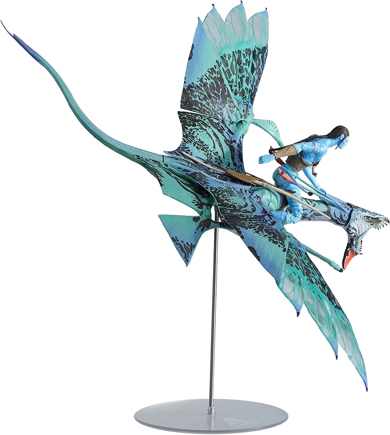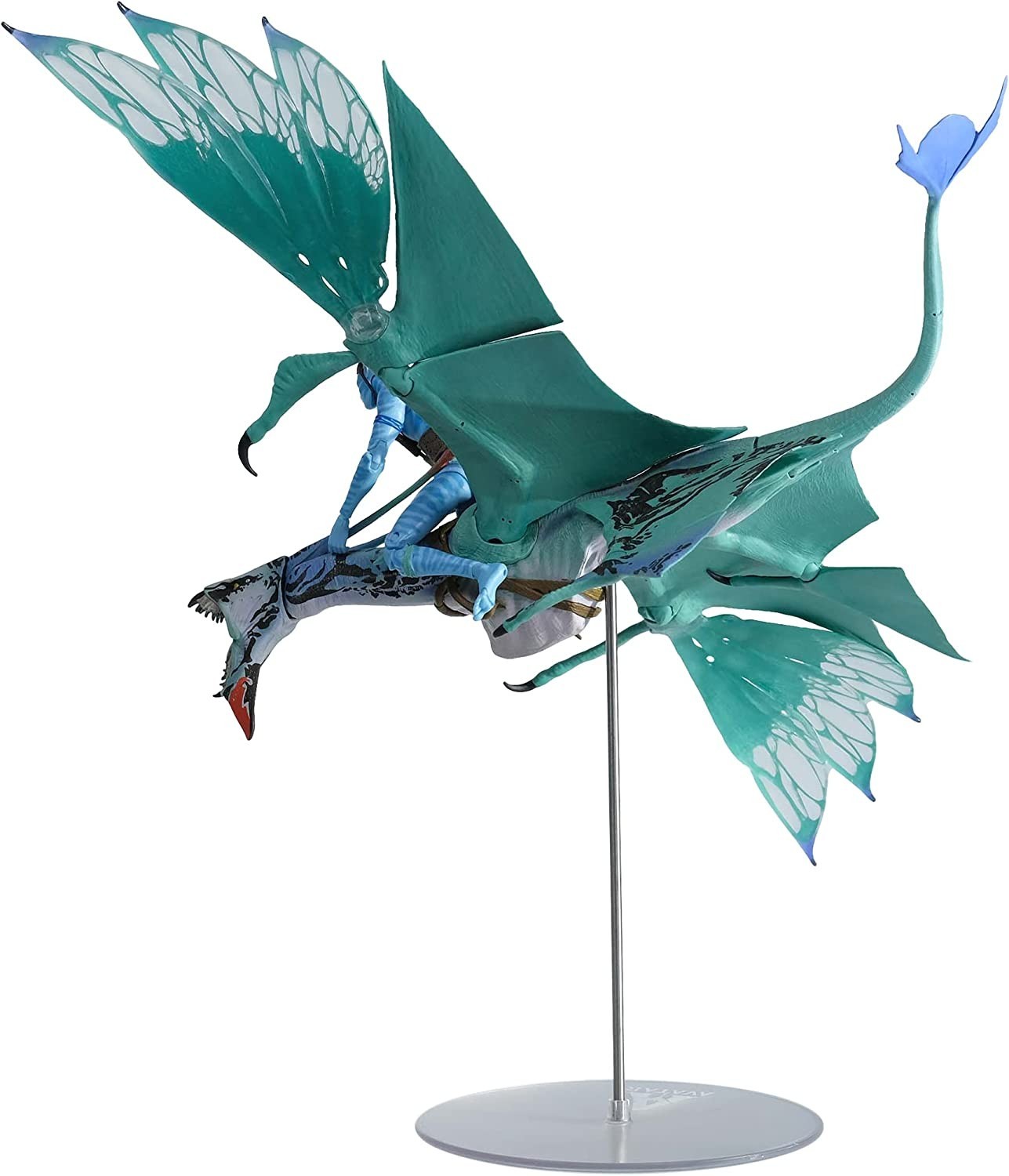 Los Banshees son las criaturas aladas que los Na’vi montan para volar de un lugar a otro de Pandora. Tanto Neytiri como Jake Sully usan Banshees en las películas de “Avatar”, la visionaria saga creada por James Cameron que ha batido todos los récords de taquilla. McFarlane Toys te trae la impresionante figura articulada de un Banshee de las montañas de Pandora con Jake Sully y una peana de exposición con plantas del planeta. Las figuras están hechas de PVC de gran calidad detalladas al milímetro tanto en el trabajo de escultura como en el de pintura y quedarán de escándalo en tu colección de figuras articuladas. Mide unos 22 cms de punta a punta de ala. Incluye una peana para colocar a Banshee encima y que parezca que está volando por tu colección. Además, este set Deluxe viene en una preciosa caja temática.