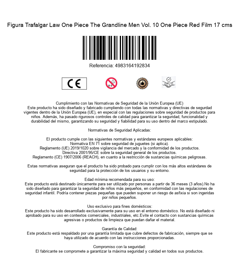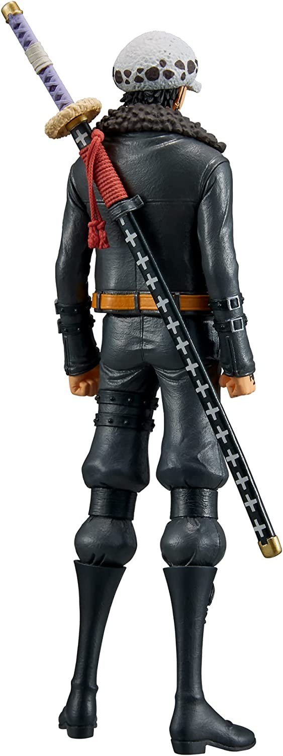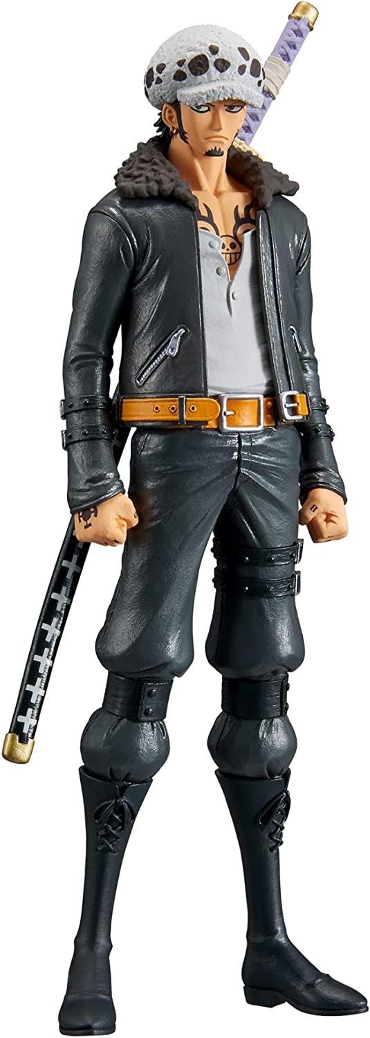 Trafalgar Law, reconocido pirata y cirujano de alta mar, es el capitán de la tripulación llamada Piratas Heart. El aspecto de Trafalgar es rotundo, con sus tatuajes tribales en los brazos y la llamativa cicatriz en forma de cruz en su frente. Esta figura de Bandai y Banpresto representa a Trafagar Law cargando a la espalda a su inseparable espada llamada Kikoku. Hazte con este honorable (a su manera) y astuto personaje y colócale en la proa de tu embarcación, esta figura de 17 cms hecha de PVC de gran calidad quedará de lujo en ese lugar y será toda una declaración de intenciones para el resto de tripulaciones que te vean con sus catalejos.