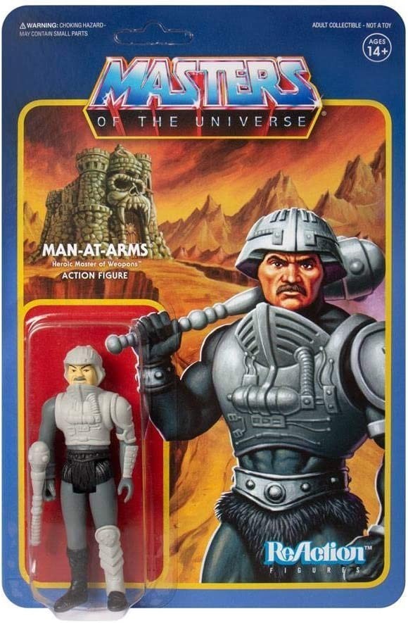 La serie de figuras retro más ochenteras que puedas 'ochentear' de los Masters del Universo. Super 7, con Reaction Figures, ofrece una colección donde la sencillez se complementa con lo icónico de la propuesta del estilo de figura. Este Man-At-Arms de 10 cms incluye porra y tiene 5 puntos de articulación. Colecciona las figuras de la colección y disfruta del toque 'ochenter' de los Masters.