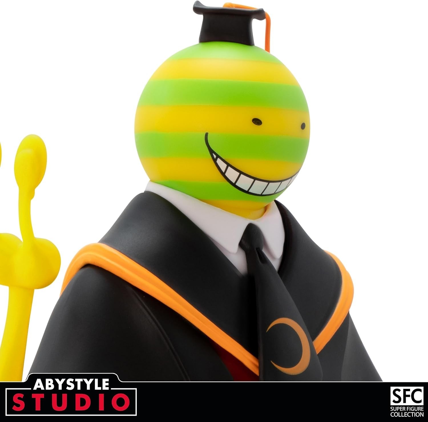 Assassination Classroom nos ha dado personajes… muy peculiares. Uno de ellos es este Koro Sensei, Maestro del salón de clase 3-E de la escuela secundaria de Kunugigaoka, y el protagonista secundario y anti-héroe del anime AC. La estatua de este personaje mide 21 cms, está hecha de PVC y viene en una caja temática con ventana para exponer la figura incluso dentro de ella. Es una creación de Abystyle que te trae al etéreo y amarillo Korosensei con su uniforme de Maestro de toga y birrete. En esta versión del personaje, Koro tiene rayas verdes en la cara. Hazte con él y atiende a sus lecciones, te aseguramos que no has tenido un Maestro igual.