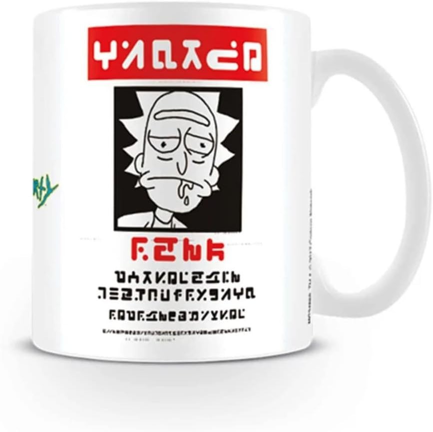 ¡Se Busca! Y no solo en esta dimensión sino en todas. Rick y su cartel de Se Busca en idioma… no terrestre, decora esta taza de licencia oficial hecha de cerámica y de 320 mls de capacidad. Es apta para usar en lavavajillas y microondas y viene en una caja protectora con una ilustración de gatitos flotando alrededor de uno de los portales que Rick crea con su pistola.