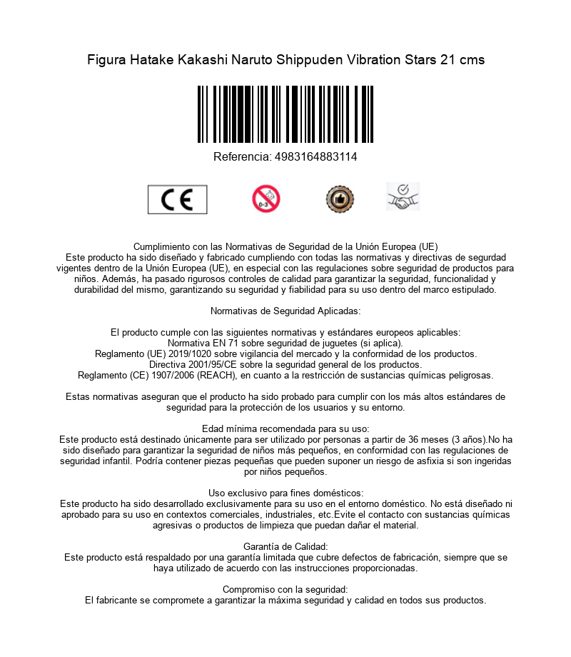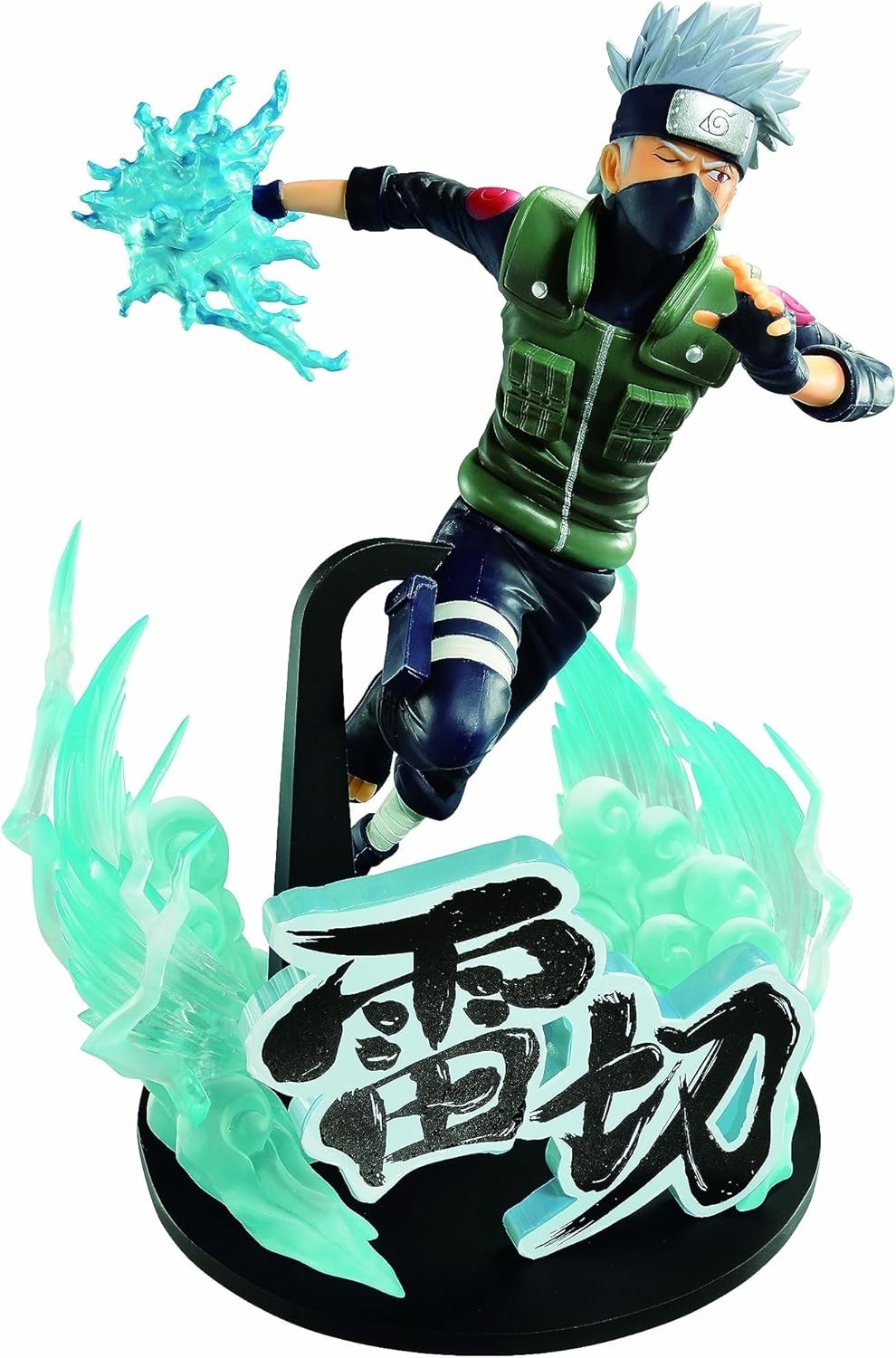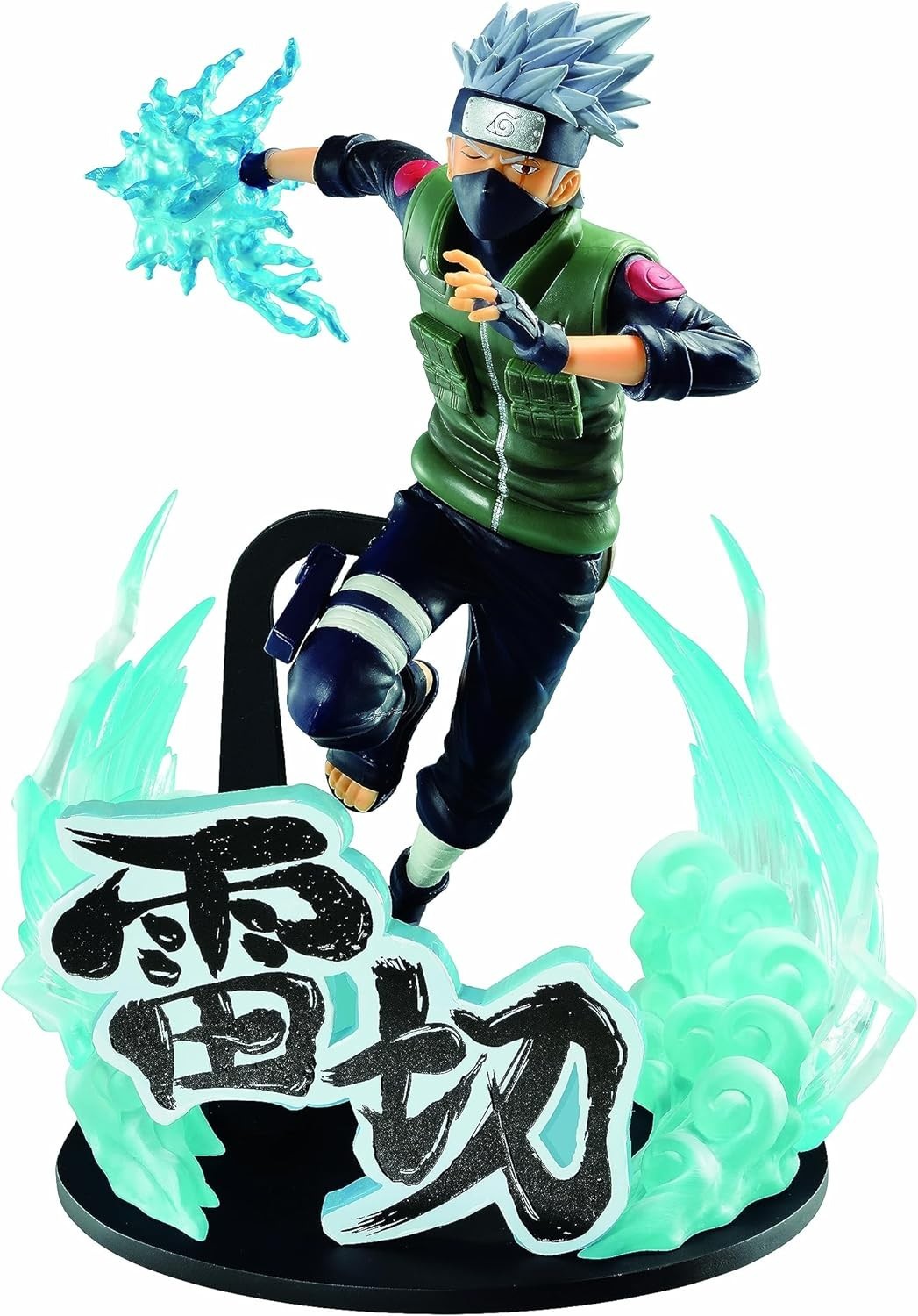 Kakashi Hatake fue reconocido a nivel mundial dentro del mundo de Naruto Shippuden gracias a su uso del Sharingan. Este icónico ninja que lleva la parte inferior de su rostro tapado, no dejándosela ver ni si quiera a sus alumnos, llega a tu colección de figuras de Naruto gracias a Bandai, que celebra la serie de manga y anime con una espectacular línea de figuras de la que Hatake forma parte. La figura de 21 cms muestra al ninja saltando y lanzando un poderoso ataque de color azul translúcido que parece que se mueve. Pertenece a la línea Vibration Stars. Viene en una caja temática y ha sido moldeado y pintado con una atención al detalle excelsa. Incluye peana de exposición con efectos de poder, convirtiéndolo en un diorama sensacional. Está hecho de PVC de gran calidad.