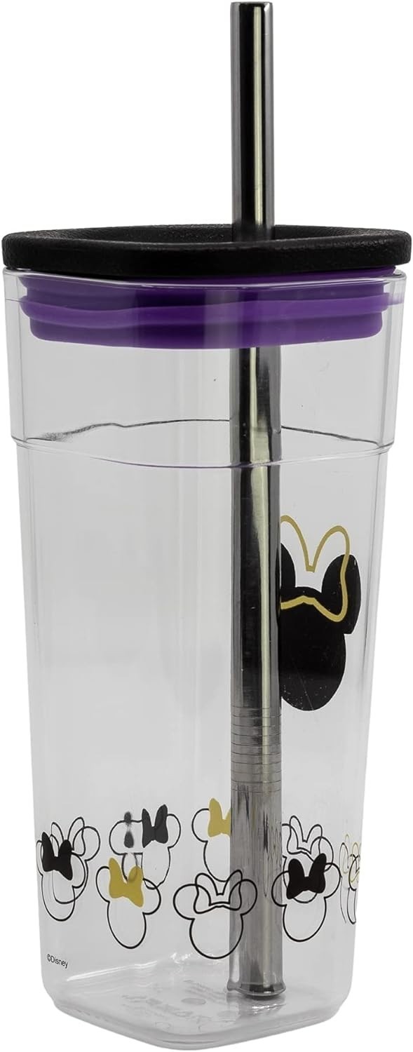 Vaso Minnie Mouse Cube Disney Acrílico Con Pajita De Acero 540 mls