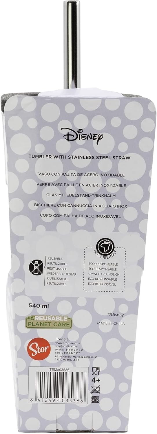 La silueta de Minnie Mouse es sin duda una de las más reconocibles del mundo de la animación. La marca Stor lo sabe y por eso ha decorado con la icónica silueta de la ratoncita este vaso rectangular. Está hecho de plástico resistente, y la guinda en el pastel es la pajita de acero inoxidable que podrás reutilizar una y otra vez. Este vaso no es apto para lavavajillas ni microondas, pero si que es apto para que bebas tus bebidas favoritas al más puro estilo Disney. ¿Tienes sed?