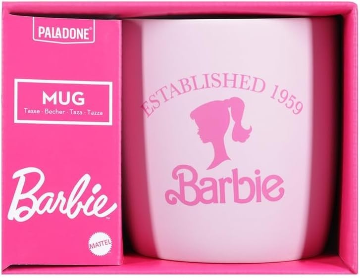 Para los fans del lore clásico de Barbie, tenemos una preciosa taza que rinde tributo a los orígenes de la muñeca más famosa del mundo. Esta taza de licencia oficial que ha creado Paladone, está hecha de cerámica, tiene una capacidad de 400 mls, y tiene un acabado rosa mate. Tiene una silueta del perfil de Barbie en la superficie, y la fecha de creación del icono rubio. No es apta para lavavajillas ni microondas. ¡Desayuna con Barbie!