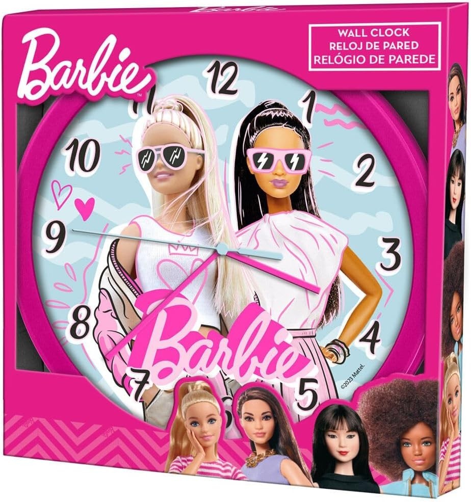 Alza la vista, mira la hora en tu nuevo reloj de agujas y sentirás la magia de Barbie al mismo tiempo que averiguas en que día vives. Kids Euroswan nos trae un exclusivo reloj de pared con una ilustración muy rockera de dos Barbies en la esfera. Funciona con una pila AA que no está incluida. Es un artículo de licencia oficial de la famosa muñeca de Mattel.