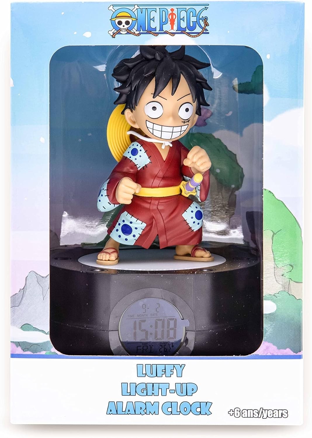 Monkey D. Luffy será el encargado de despertarte cada mañana como si fueras un miembro más de la tripulación del sombrero de paja. Este reloj despertador de licencia oficial de One Piece ha sido creado por Tekno Fun. Tiene un difusor de luz LED con varias intensidades. Podrás ver la hora, la fecha y la temperatura. Funciona con cable USB (incluido) o con 3 pilas AAA (no incluidas). Además, incluye stickers decorativos. Una figura de Monkey con kimono es la pieza final que decora este reloj y que le hace ser una pieza increíblemente original para los fans de One Piece.