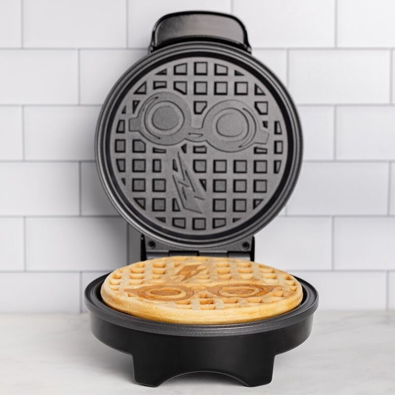 ¡Prepara tus mejores gofres con la forma de dos de los símbolos más famosos de Harry Potter! Siéntete como un auténtico mago con esta gofrera exclusiva de Harry Potter que nos trae Uncanny Brands. Es de licencia oficial y funciona conectándola a la corriente eléctrica con el cable que trae. Es de fácil limpieza, tiene una luz para indicar el nivel de cocinado del gofre, y asegura un tostado uniforme con el estilizado diseño que tiene. Esta gofrera que hace gofres con los símbolos de las gafas y el rayo en la frente de Harry. ¡Saborea el auténtico sabor de una de las sagas más queridas de la literatura!