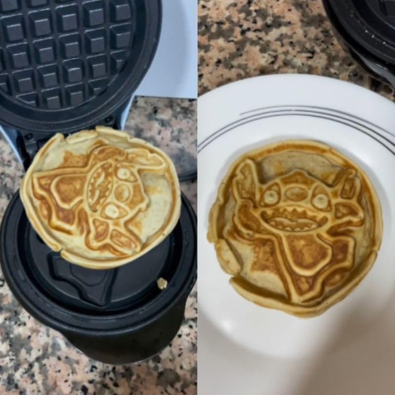 Se te hará la boca agua cuando abras esta gofrera… Stitch, el adorable alienígena de la película de Disney “Lilo & Stitch”, se ha pasado por nuestro universo para dejarnos su gofrera exclusiva. Lleva su nombre en la superficie, junto a una flor hawaiana, y dentro tiene el molde metálico para hacer los deliciosos gofres que te comerás cada mañana. El molde tiene la forma de Stitch, así que él mismo te acompañará cada vez que te tomes uno de los gofres. Es una creación de licencia oficial de Select Brands.