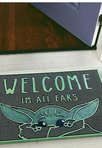 Todos los cazarrecompensas y Jedis que lleguen a tu puerta sabrán que se trata de un lugar sagrado al ver este felpudo de caucho. Fabricado por la prestigiosa marca Pyramid, esta alfombrilla resistente a la humedad y fácil de limpiar hará las delicias de los fans de The Mandalorian, la pionera serie homenaje al western dentro del universo Star Wars creada por Jon Favreau. Este felpudo da la bienvenida a tus invitados con la frase en inglés 'soy todo oídos' y una imagen del ya icónico Grogu (The Child) o también conocido como 'Baby Yoda' en las redes sociales.