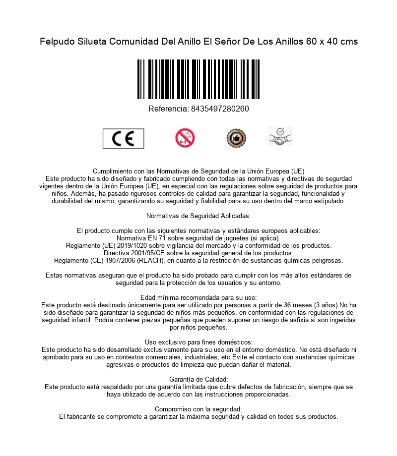 El felpudo del Señor de los Anillos mide 60 x 40 cm y está elaborado con fibra de coco y una base de PVC antideslizante. Con un diseño icónico de la primera película de la trilogía dirigida por Peter Jackson, con la silueta de la famosa Comunidad del Anillo, este felpudo transporta a los visitantes a la Tierra Media antes de entrar a tu hogar. Es una creación de licencia oficial de la marca Erik ideal para los amantes de la obra de J.R.R. Tolkien.