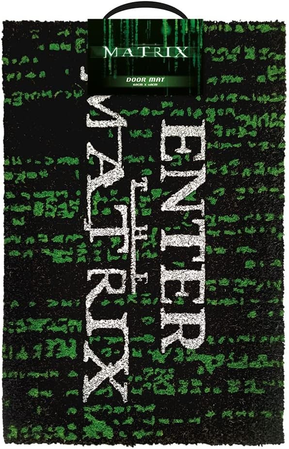 Este felpudo con la frase "Enter the Matrix" de 60 x 40 cm está fabricado con PVC antideslizante y fibra de coco de alta calidad. Su diseño, inspirado en la icónica saga, es perfecto para los amantes de la ciencia ficción. Además de dar la bienvenida con estilo, su superficie antideslizante garantiza la seguridad en cualquier entrada. Una adición única y funcional para tu hogar o espacio de trabajo. Está hecho por Pyramid International y tiene licencia oficial.