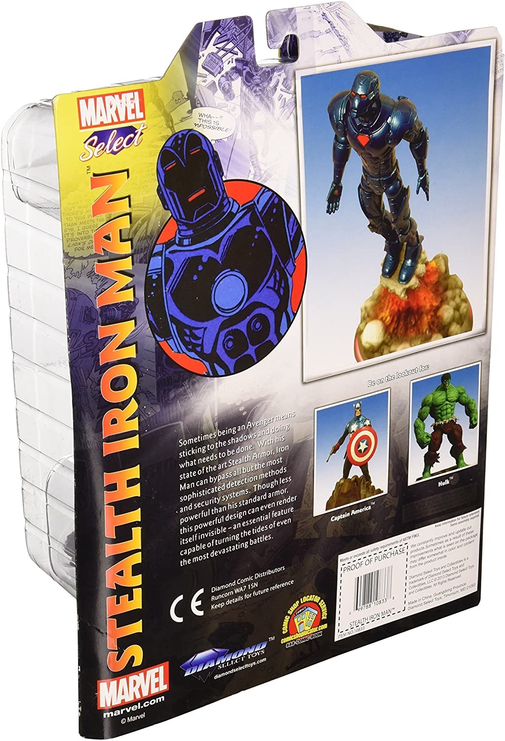 La línea Marvel Select de Diamond Select Toys ha creado a este espectacular y elegante Iron-Man con su traje Stealth de color azul metalizado. Esta armadura ha sido diseñada y creada por Tony Stark para misiones que requieran sutileza e infiltración. Esta imponente y preciosa figura de unos 20 cms de altura hecha de PVC incluye una peana diorama para exposición que está esculpida y pintada para dar la sensación de que es el efecto de combustión que desprenden las botas de Iron-Man. Si eres más de espiar que de combatir hazte con este Hombre de Hierro que viene protegido en un enorme blíster temático del personaje.