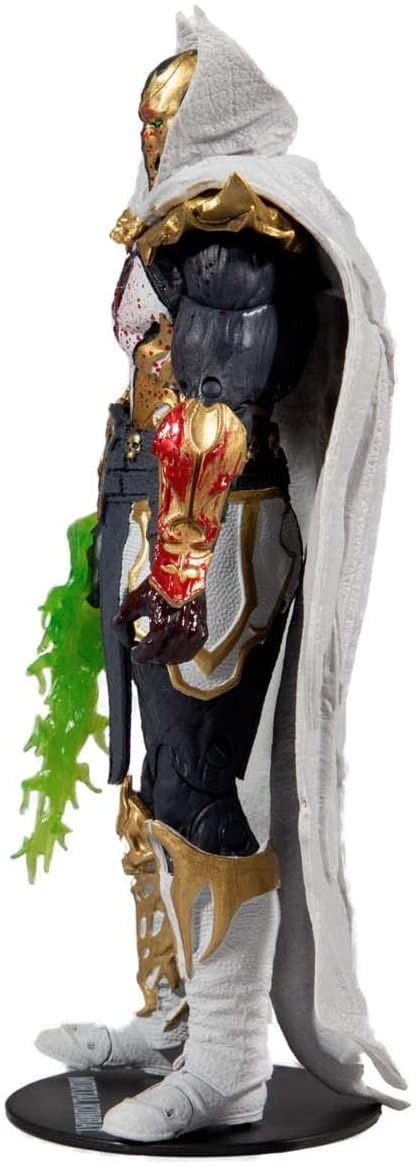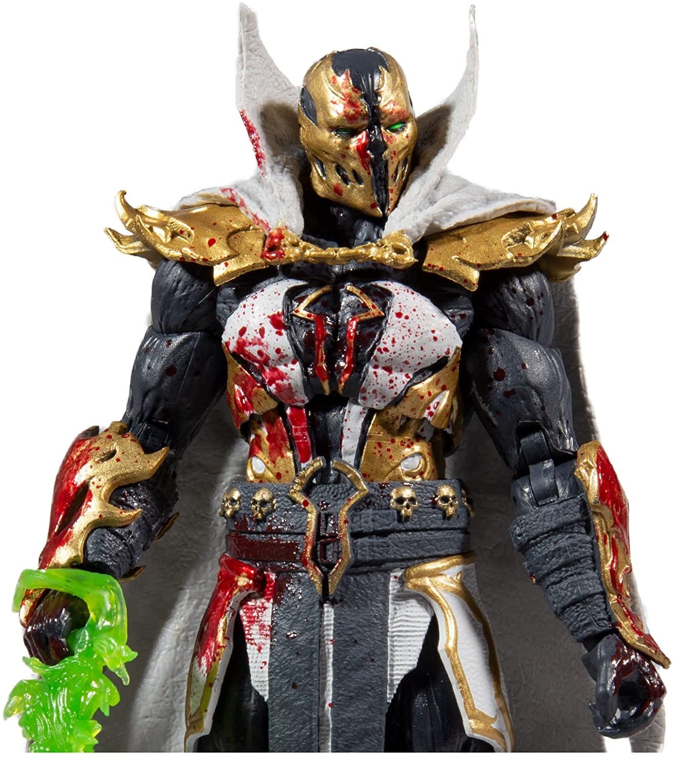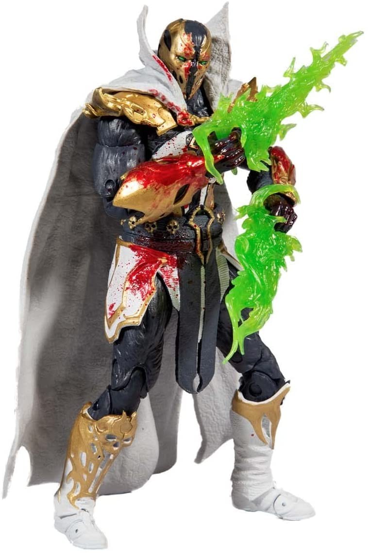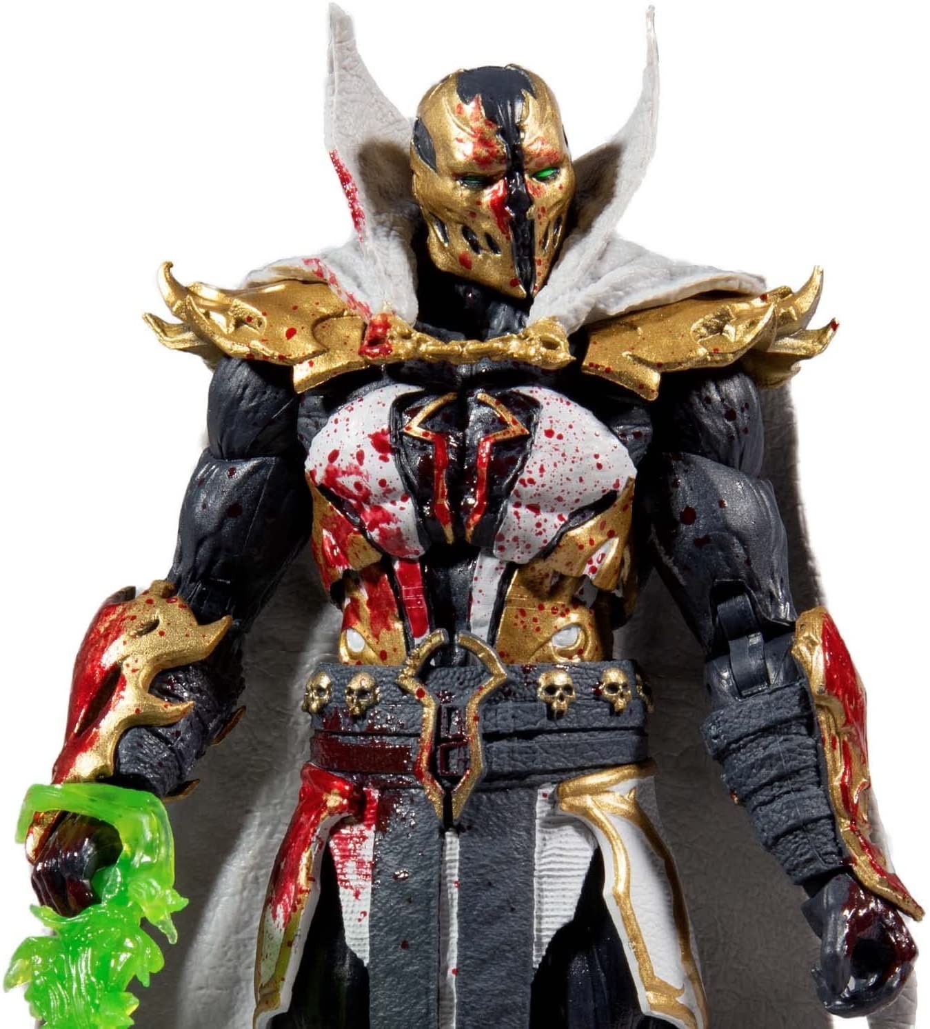 McFarlane Toys se ha lanzado al reto de crear figuras articuladas de acción del videojuego Mortal Kombat 11. Uno de los personajes que aparecen en el juego 'machacabotones' es el Malefik Spawn, versión sangrienta del personaje basado en los cómics creados por Todd McFarlane. Esta figura de 11 cms viene con dos rayos de energía de color verde para acoplar a sus manos y una peana negra con el nombre del videojuego para exponer a la figura en tu rincón de preferencia. Los detalles dorados, blancos y negros de los apliques de esta figura de Spawn rivalizan con el que ves en tu pantalla cada vez que juegas al MK11.