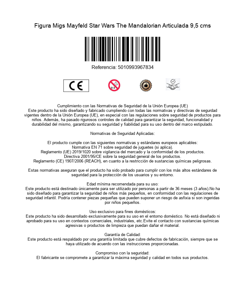 El cazarrecompensas oportunista Migs Mayfeld fue interpretado por el actor y humorista americano Bill Burr en la primera y segunda temporada de "The Mandalorian", la serie punta de lanza de la plataforma de streaming Disney +. Este personaje también forma parte de la Vintage Collection de Hasbro y Kenner, y viste el uniforme que lucía en uno de los episodios de la segunda temporada de la serie. Incluye bláster láser y casco. Si le llevas sin casco podrás alucinar con el nivel de detalle de la cara del cazarrecompensas. Mide 9,5 cms y está hecho del mejor PVC de la galaxia.