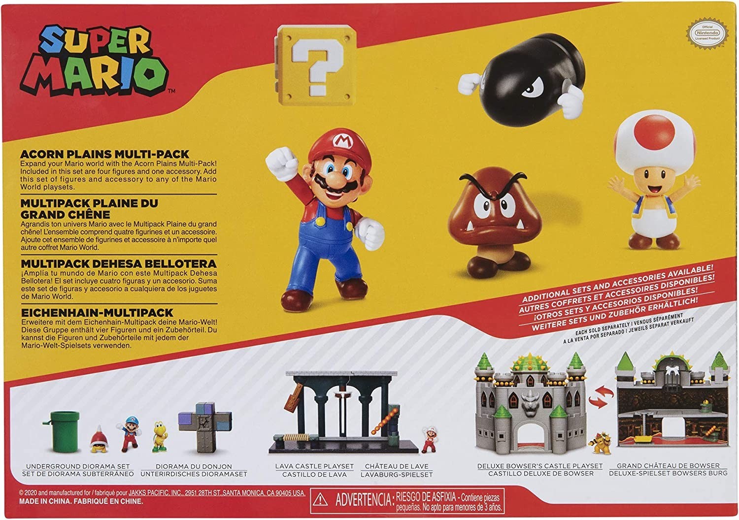 Super Mario Bros y los personajes que viven en su mundo de Dehesa Bellotera vienen en una espectacular caja de 5 figuras que incluye a Mario, una malvada seta, a Toad, una caja sorpresa y una bala de cañón con el calón incluido. Diviértete trayendo a los icónicos personajes de Nintendo al mundo real gracias a este pack de la marca Jakks con el que podrás revivir las aventuras del fontanero más famoso de los videojuegos.