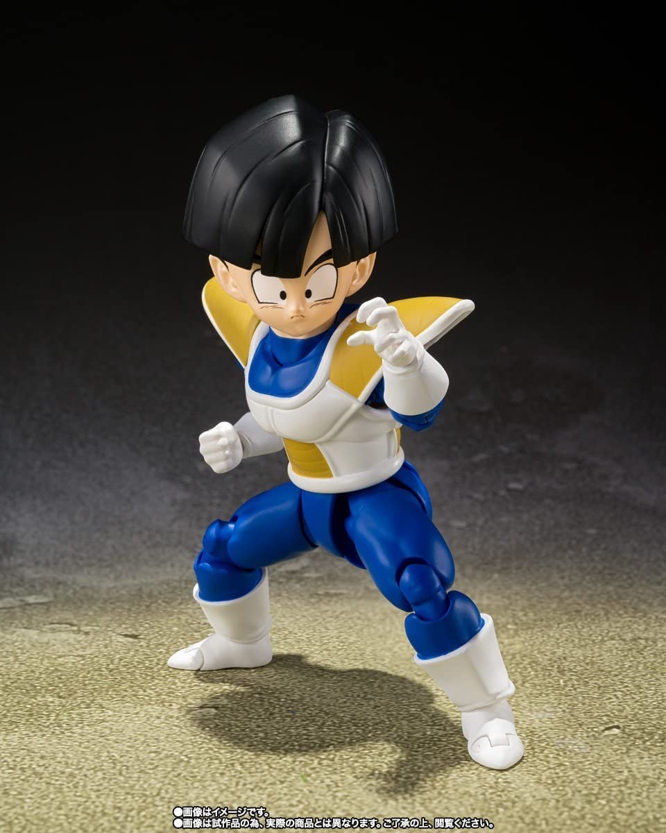 El fiero y… pequeñito Son Gohan tiene su propia figura de acción articulada de la línea SH Figuarts de Bandai. Viene con cuatro caras intercambiables con distintas expresiones, partes de cabello opcional, tres manos izquierda y cuatro derecha, partes de pecho opcionales y una bola de dragón. Mide 10 cms y está hecho de PVC de gran calidad. Son Gohan y su corte de pelo a tazón y su armadura saiyana ocuparán un lugar muy especial en tu colección de figuras de Dragon Ball Z.