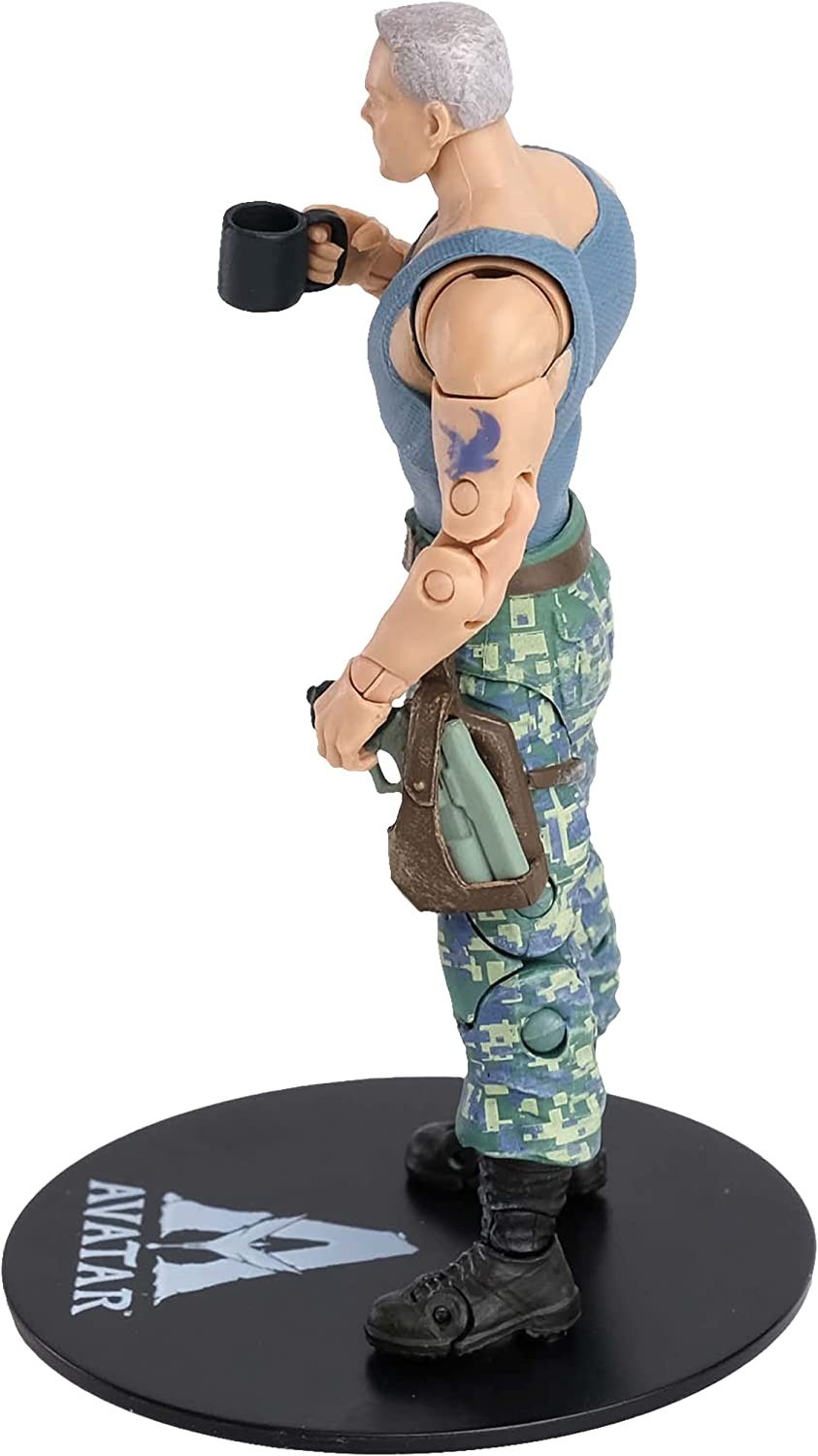La secuela de “Avatar” tardó trece años en llegar a la gran pantalla, pero cuando por fin lo hizo arrasó y demostró que James Cameron sigue siendo el rey del mundo. La icónica marca McFarlane Toys nos trae las figuras oficiales de la saga que ha roto todos los récords de la industria cinematográfica: “Avatar”. Y son tan impresionantes como la película. Esta vez tenemos la figura articulada del Coronel Miles Quaritch, el líder militar de la RDA que jura destruir a Jake Sully y a Neytiri por haber ‘abusado de su confianza’. La figura del personaje interpretado por Stephen Lang mide 11 cms e incluye una peana para exposición y accesorios como ametralladora, pistola, efectos de disparo, cabeza intercambiable con máscara de oxígeno, taza y manos intercambiables. ¡Colecciona las figuras de la RDA y sus impresionantes vehículos y hazte con el control de Pandora! Quaritch es compatible con un traje AMP que se vende por separado.