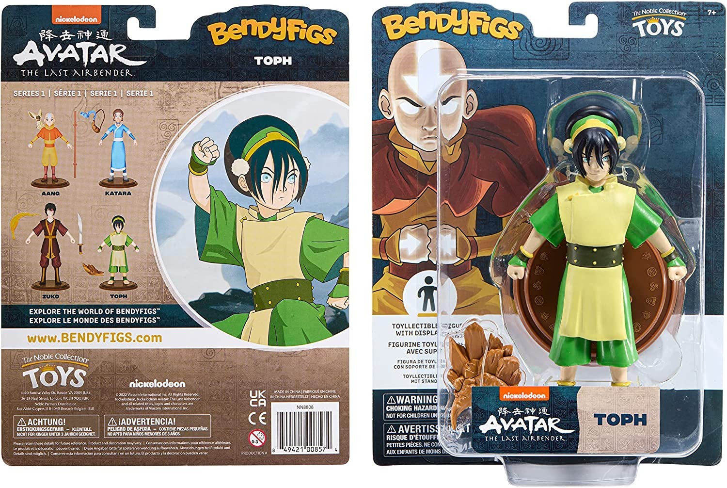 Toph es el cuarto personaje de la serie animada “Avatar: The Last Airbender” que te trae la marca The Noble Collection dentro de su línea Bendyfigs. La habilidosa maestra de tierra nació en la familia más importante de su clan, pero abandonó todas sus comodidades para acompañar a Aang, Katara y Sokka en su viaje para acabar con la guerra contra la Nación del Fuego. La figura flexible de Toph mide unos 18 cms y está hecha de PVC de gran calidad que ha sido pintada con sumo cuidado para ser lo más fiel posible al aspecto del personaje de la serie animada de Nickelodeon. Incluye accesorios como un efecto de control de tierra y una peana para que expongas a Toph junto al resto de personajes de la colección: Zuko, Aang y Katara.