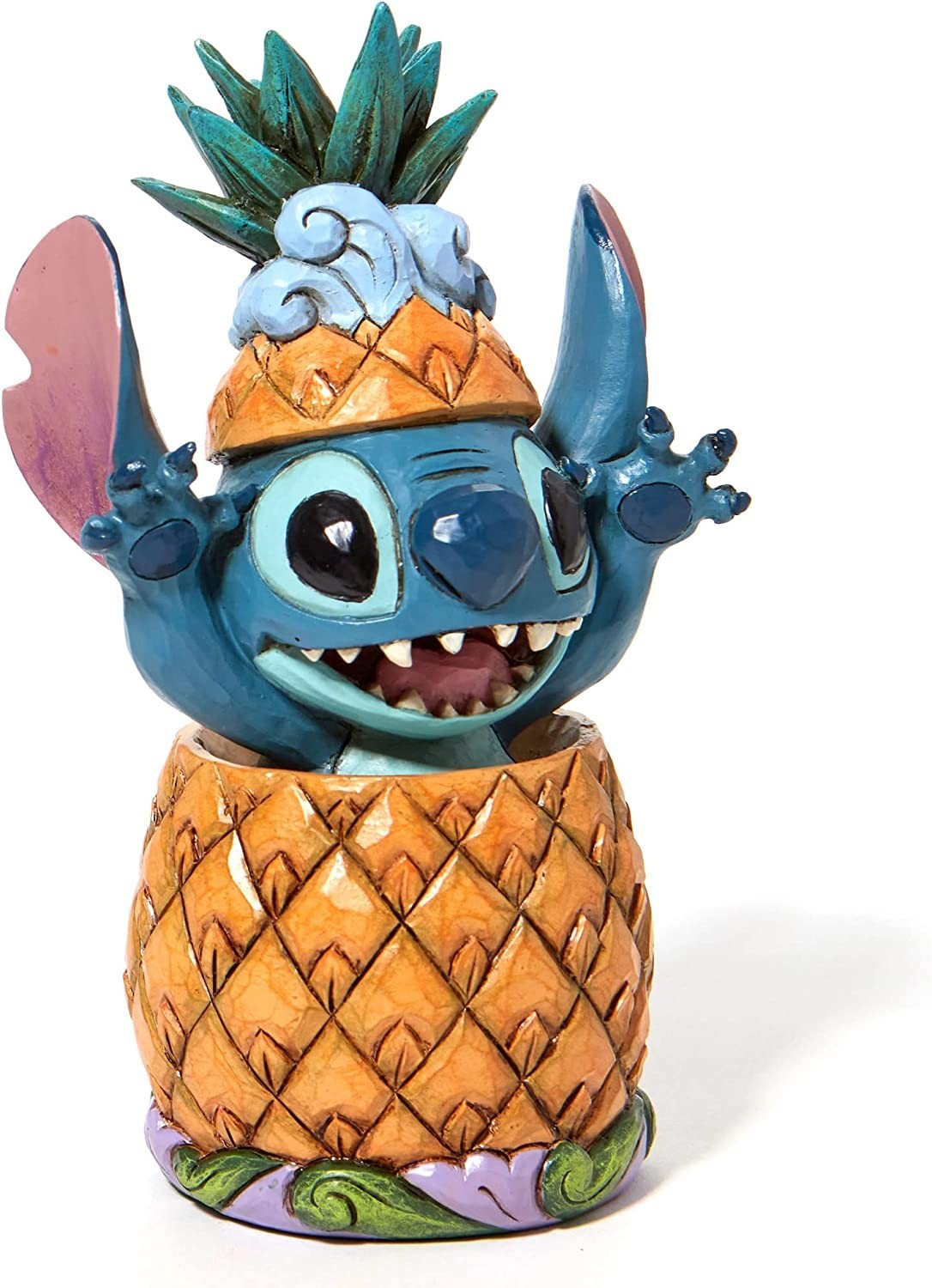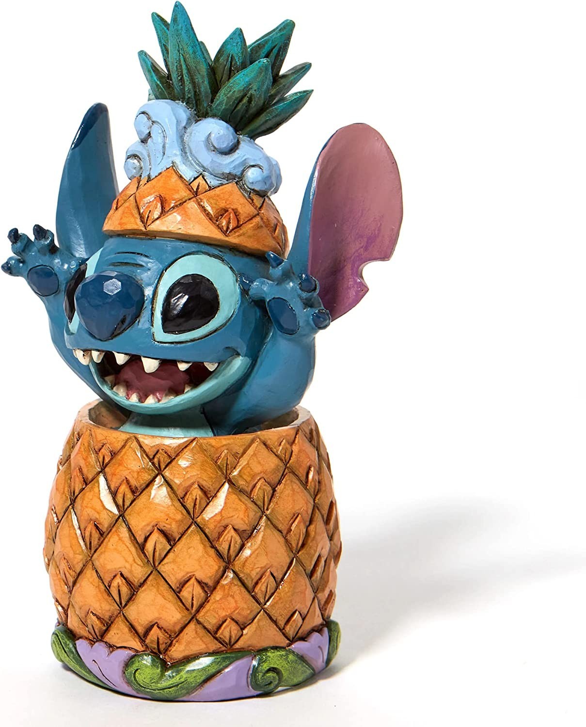El adorable, divertido e ingenioso (y no nos quedamos sin adjetivos) alienígena Stitch llega en una forma completamente nueva para derretir el corazón de los fans de Disney. Creada por Enesco, la célebre marca especializada en actualizar el diseño de queridos personajes Disney con un toque fresco, nos ofrece este Stitch sobre peana que mide unos 17 cms y está hecho de resina pintada a mano. La estatua llamada ‘Pineapple Pal’ nos muestra al simpático Stitch con un disfraz de piña y asomando la cabeza por debajo de las hojas. Viene en una elegante caja burdeos de la colección Disney Traditions. Pon a este Stitch con su nuevo diseño en el lugar más veraniego de tu casa y deja que te alegre con su presencia hawaiana.