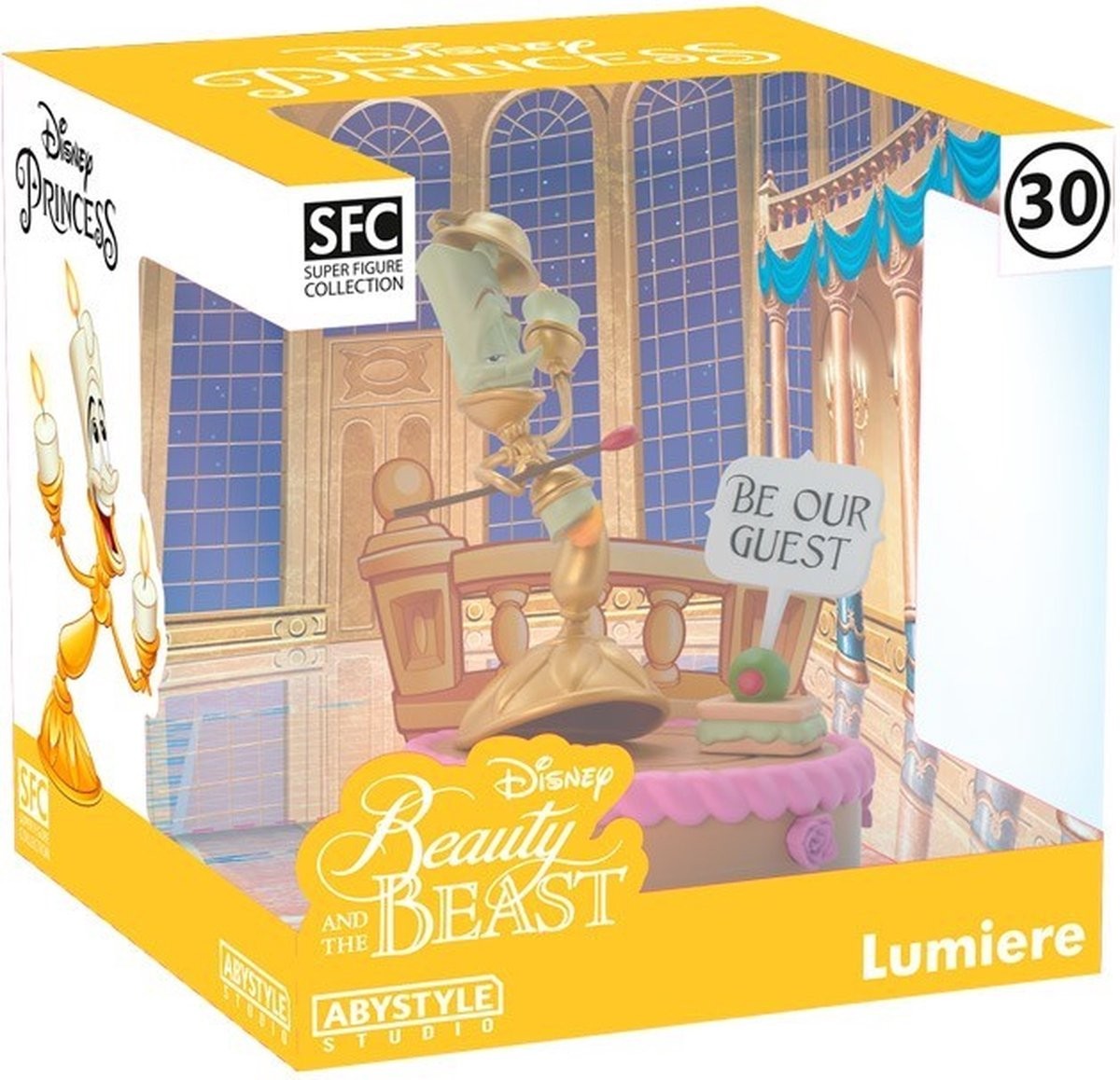 El icónico Lumière es uno de los sirvientes más fieles de Bestia. Este candelabro de origen francés tiene labia y es de forma indiscutible el alma del castillo y quién suele subir el ánimo al resto de sirvientes del lugar, incluso a veces hasta a la propia Bestia. Abystyle Studio, dentro de la línea Super Figure Collection, nos trae la figura de Lumière de 14 cms inspirada en el número musical de "Be Our Guest". Está sobre una tarta y sale con la postura de baile de la película junto a un cartel que tiene el título de la canción con la que dan la bienvenida a Bella. Está hecho de PVC y viene en una preciosa caja temática con ilustraciones del personaje. Incluye un fondo de diorama del gran salón del palacio. No esperes más y deja que este detallado y simpático Lumière sea tu invitado estrella.