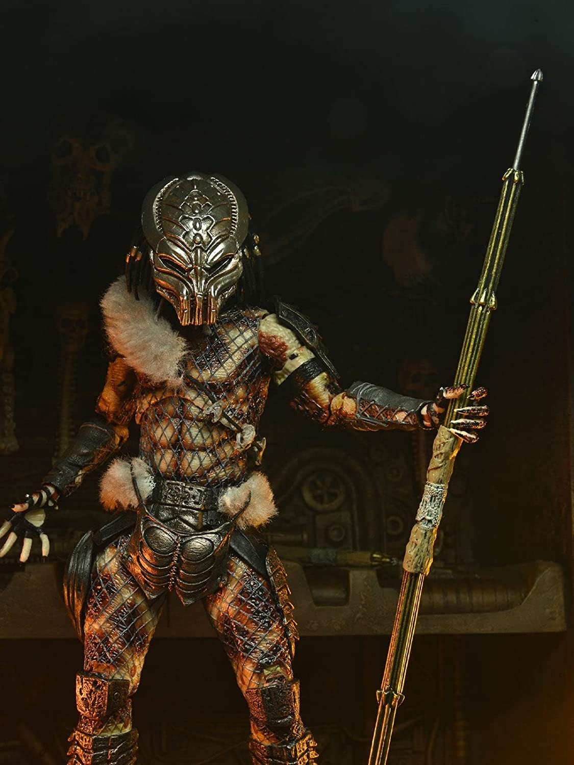 Ya sea entre rascacielos neoyorquinos o en lo más profundo de la jungla colombiana, el Predator es un enemigo formidable para cualquiera que ose cruzarse en su camino. El letal cazador alienígena llamado Snake, de la película “Depredador 2” llega a nuestras vidas gracias a Neca. La famosa marca ha creado una espectacular figura articulada de 18 cms del peligroso Depredador. Viene en una caja con tapa, fotos e ilustraciones de Snake e incluye una retahíla de accesorios con los que quedará de impresión: lanza, tres manos intercambiables, columna vertebral con calavera, máscara, lanza plegada, dos cuchillos, dos armas disco… sencillamente brutal. Está hecho de PVC de gran calidad y ha sido pintado con el mismo detalle que el Depredador le pone al noble arte de la caza.