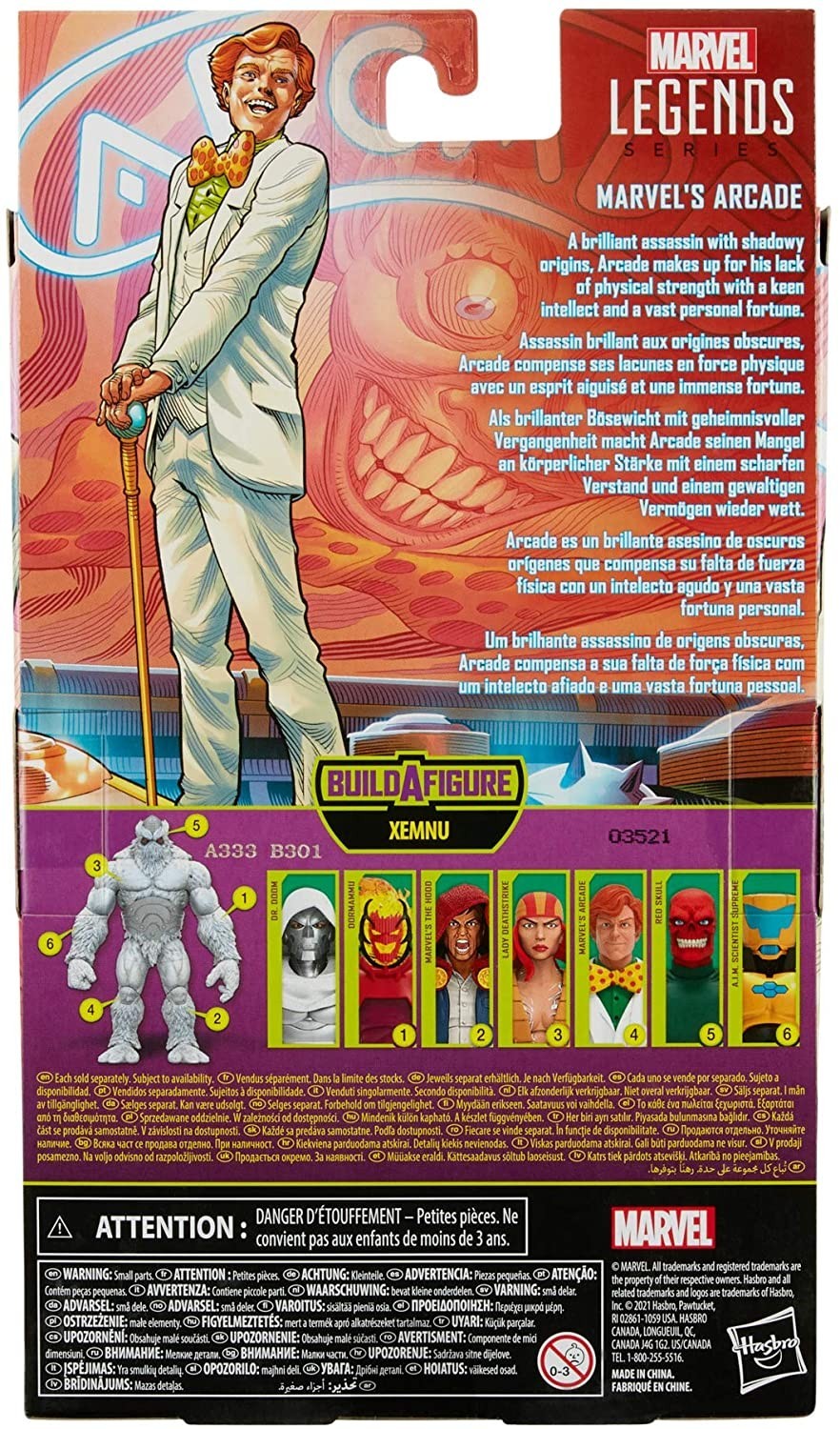 Arcade es un villano clásico de los X-Men creado por John Byrne y Chris Claremont. Una mezcla entre genio diabólico y sicario. Arcade usa elaboradas trampas para llevar a cabo sus sanguinarios planes, a menudo llevados situados en un lugar hecho a su medida llamado Murderworld. Esta figura de la serie Legends de Hasbro nos trae a este villano vistiendo su característico traje blanco con detalles a color e incluyendo tres accesoorios: una cabeza alternativa de pelo largo, su bastón, y una pieza del Build-A-Figure. Con esta pieza podrás seguir creando al titán Xemnu. Pónselo difícil a tu colección de mutantes con este Arcade de 15 cms hecho en PVC.