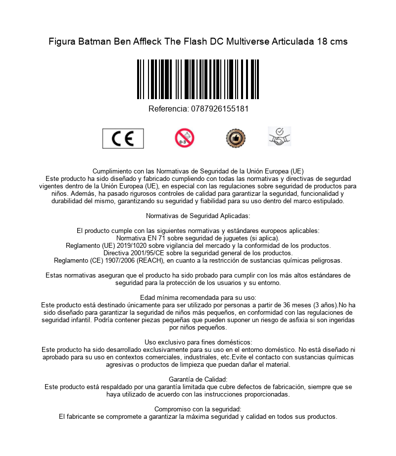 Batfleck también forma parte de la película “The Flash”. Dirigida por Andy Muschietti y protagonizada por Ezra Miller, esta película por fin saca todo el partido a la Speed Force y a su potencial de mezcla de universos y líneas temporales. En toda esa ensalada de acción se encuentra el Batman que vimos por primera vez en “Batman V. Superman”. Mide unos 18 cms, está completamente articulado e incluye accesorios como dos puños intercambiables, una peana de exposición y una tarjeta coleccionable del personaje. Forma parte de la línea DC Multiverse y viene en una caja con ventana y una ilustración en la parte posterior. ¡Que empiece la acción!